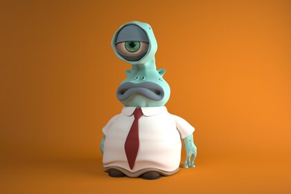 Monstruo de plastilina en un ojo sobre un fondo naranja