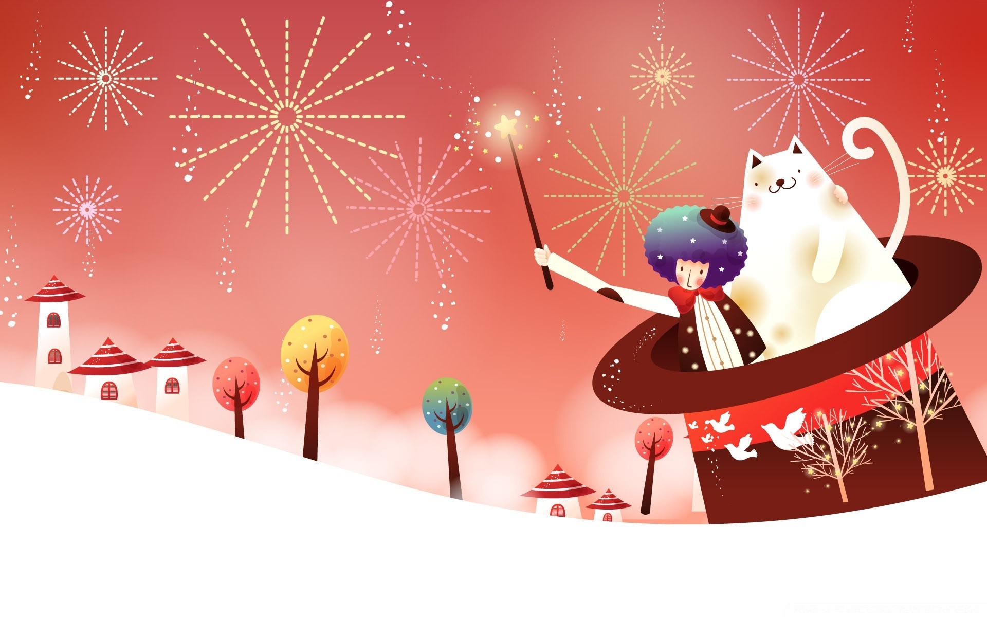 El gato y el mago con sombrero hacen magia en navidadEl gato y el mago con sombrero hacen magia en Navidad