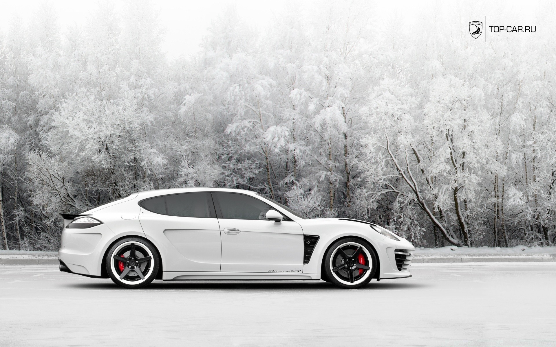 Coche en la carretera de invierno nevado