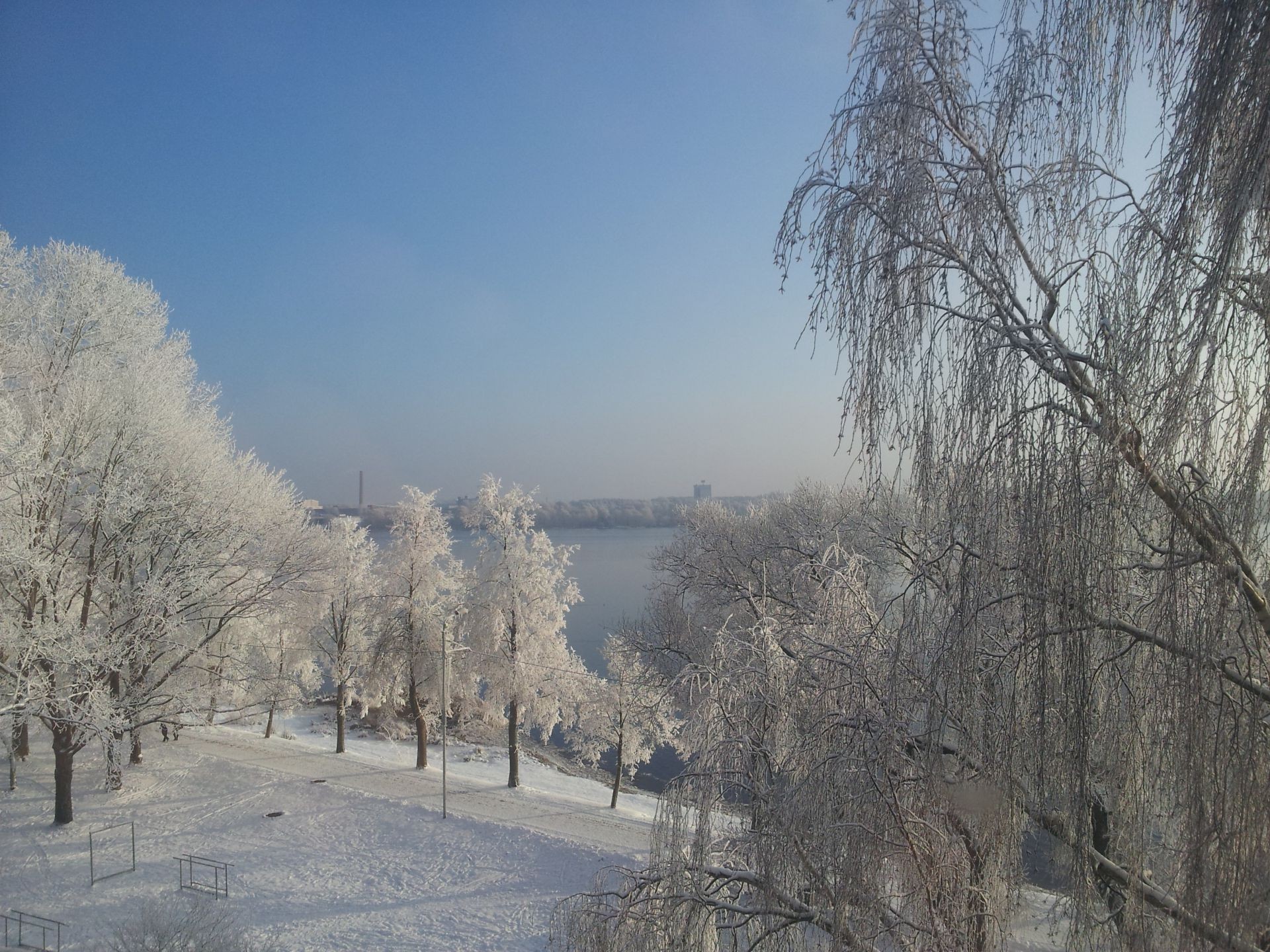Un volcán en Asia al atardecer con un sendero de capa de nieve