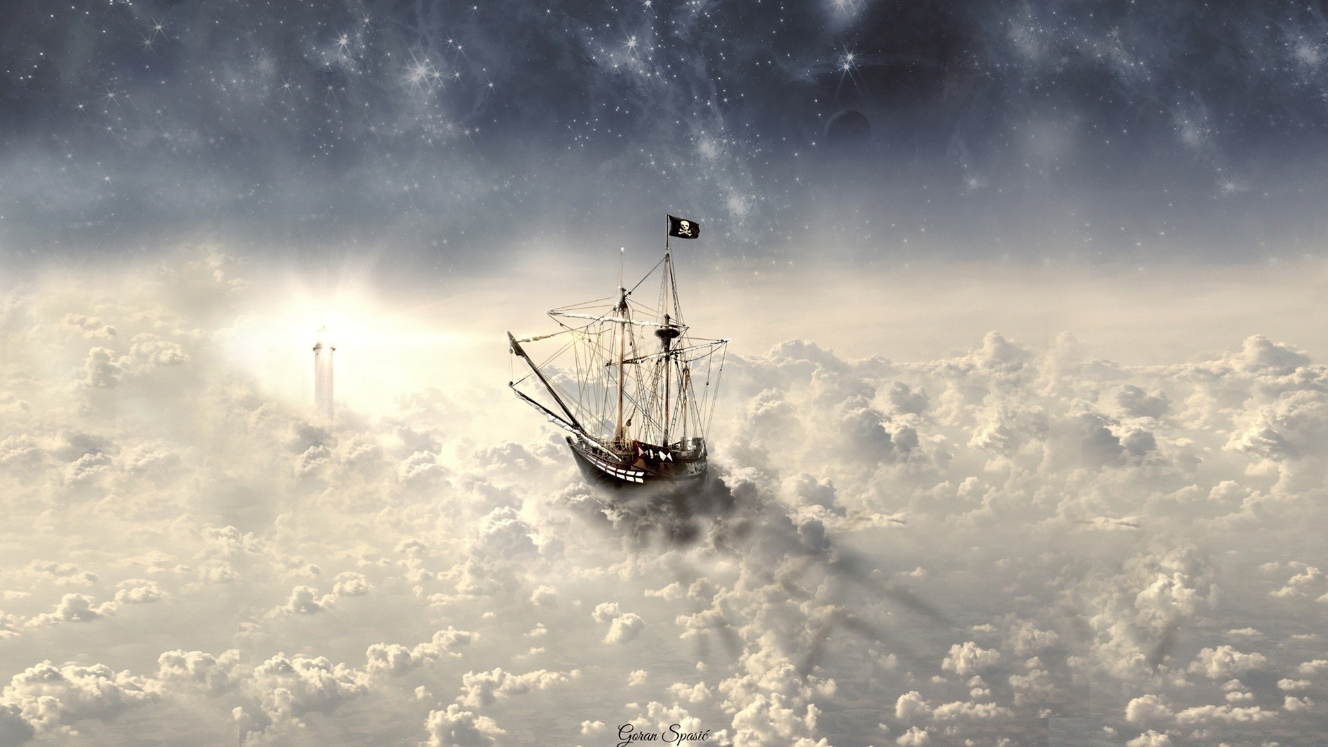 Paisaje nocturno con la Luna mirando a través de las nubes