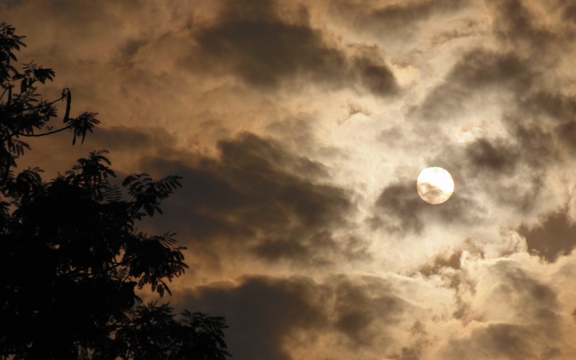 Cielo negro con nubes a punto de cerrar la Luna llena