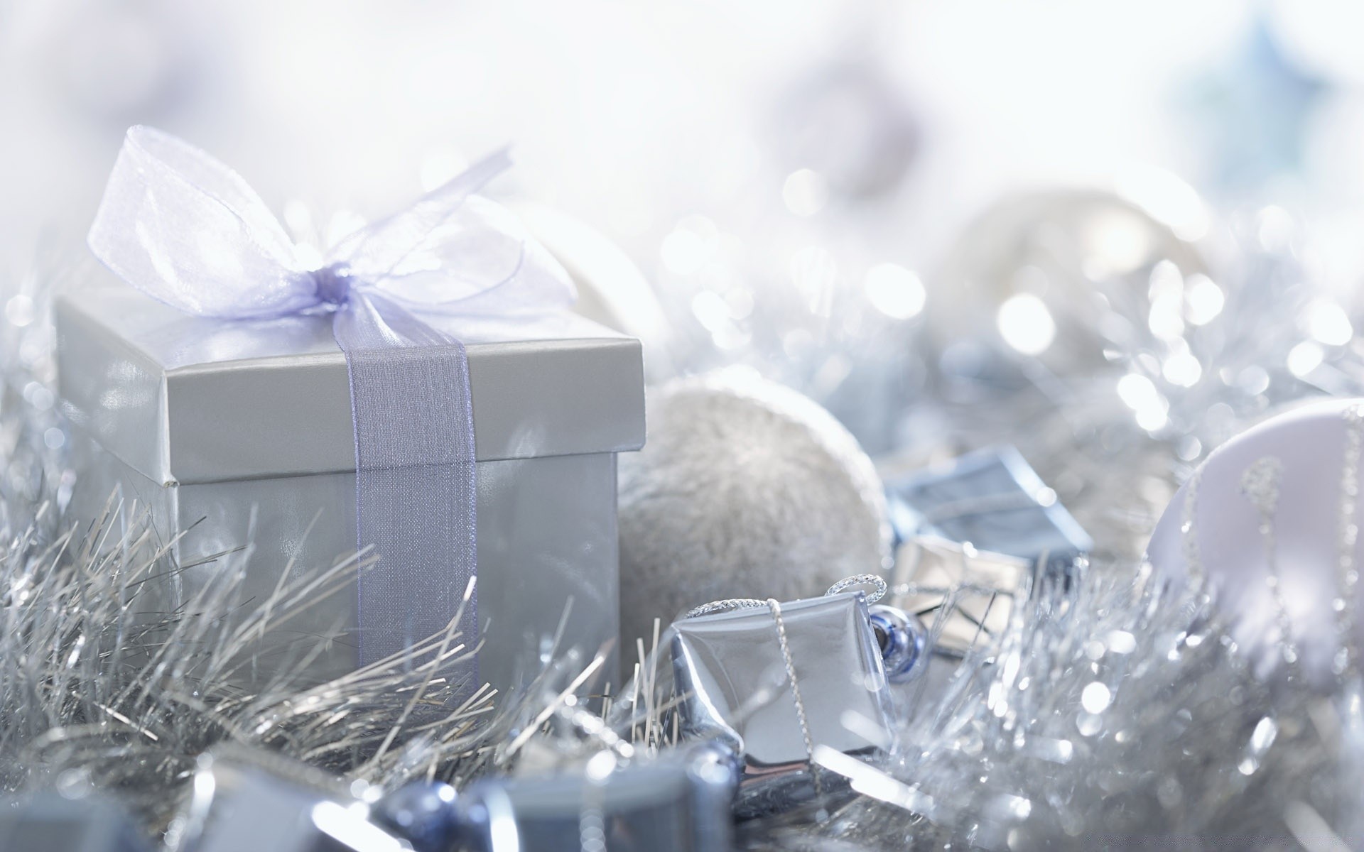 Mesa de año nuevo con elfos de Navidad y serpentina