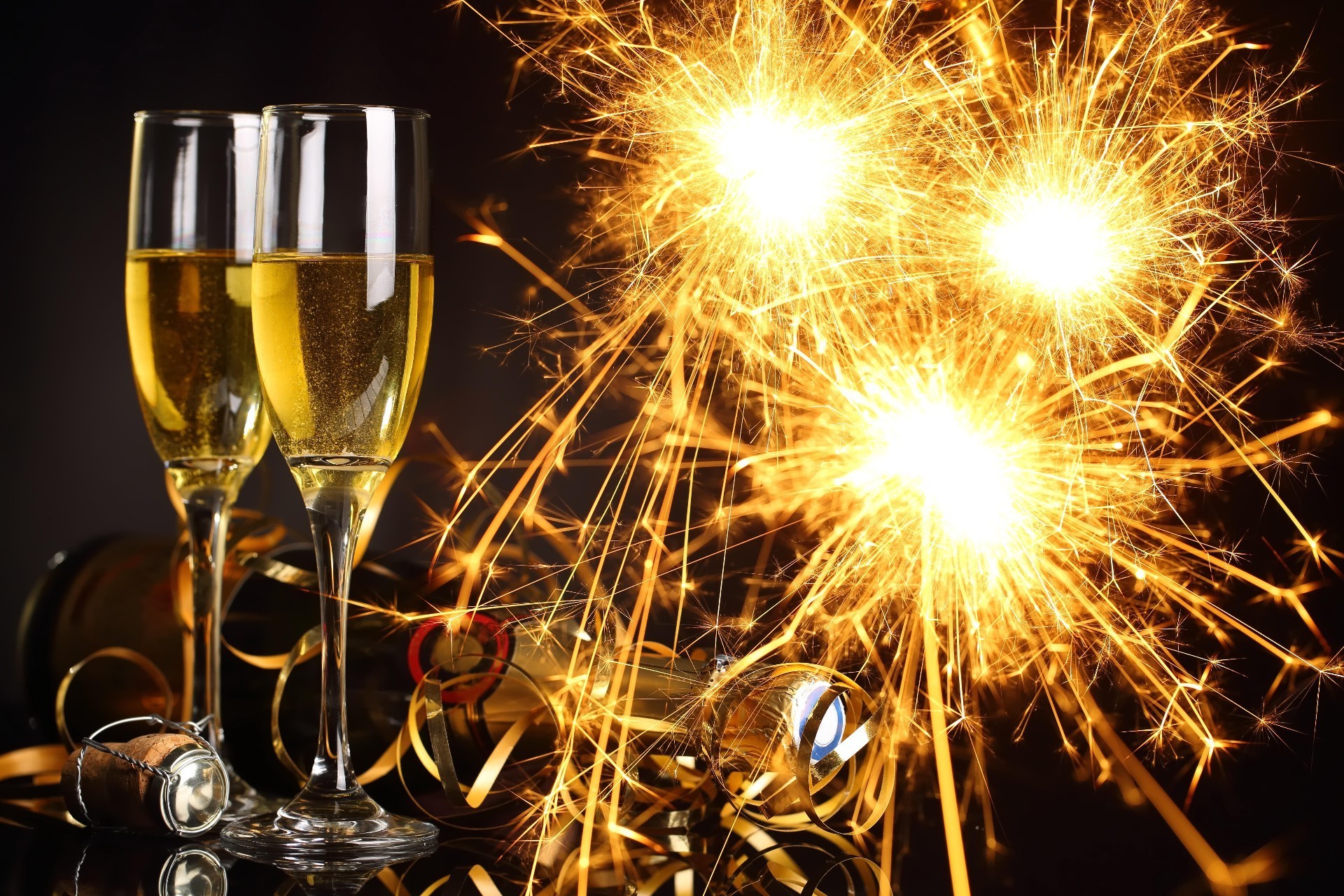 Bengalas brillantes y dos copas de champán