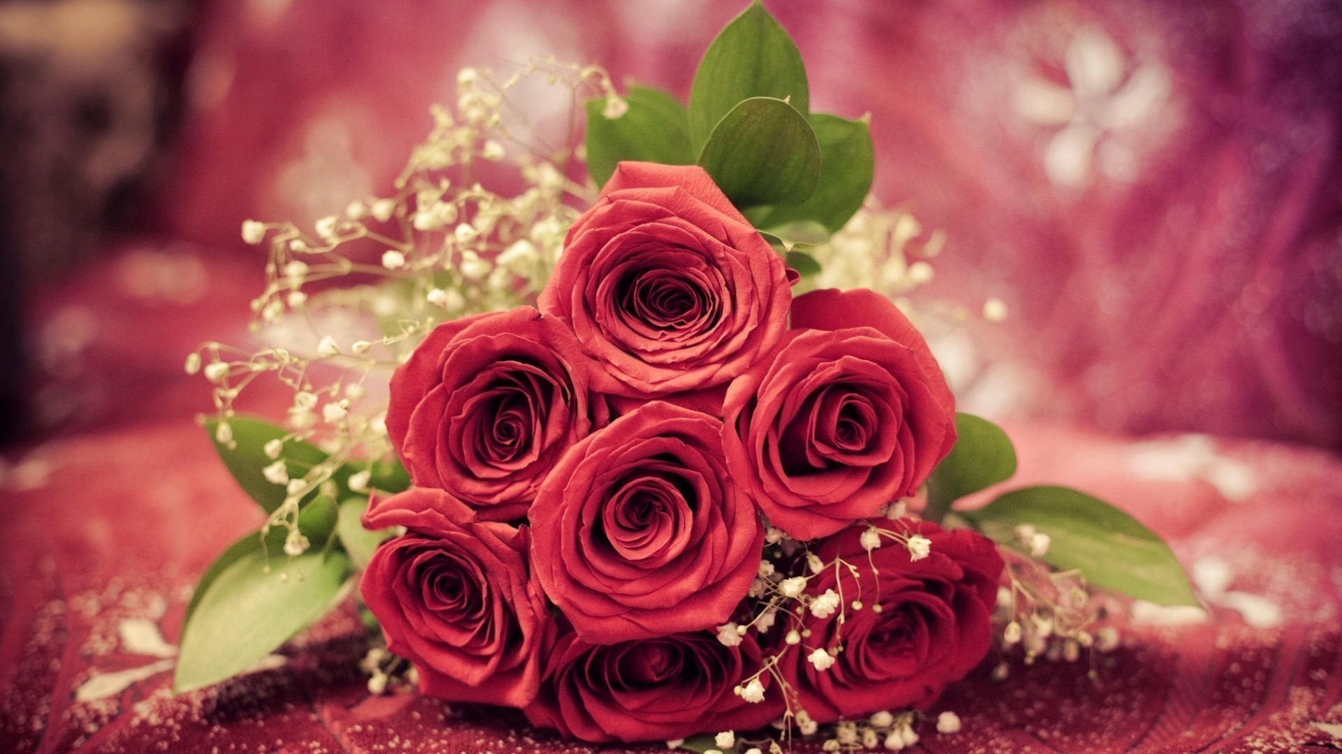 Ramo de rosas rojas y hojas