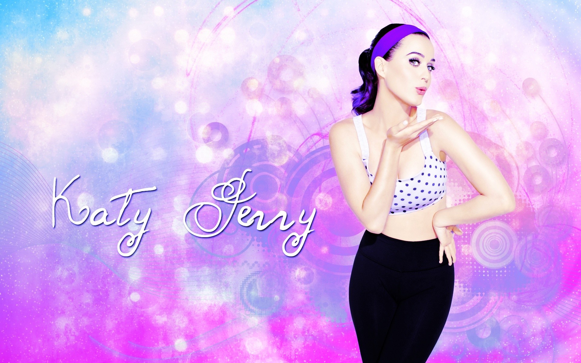 La Cantante Ketty Perry. Chica envía un beso de aire