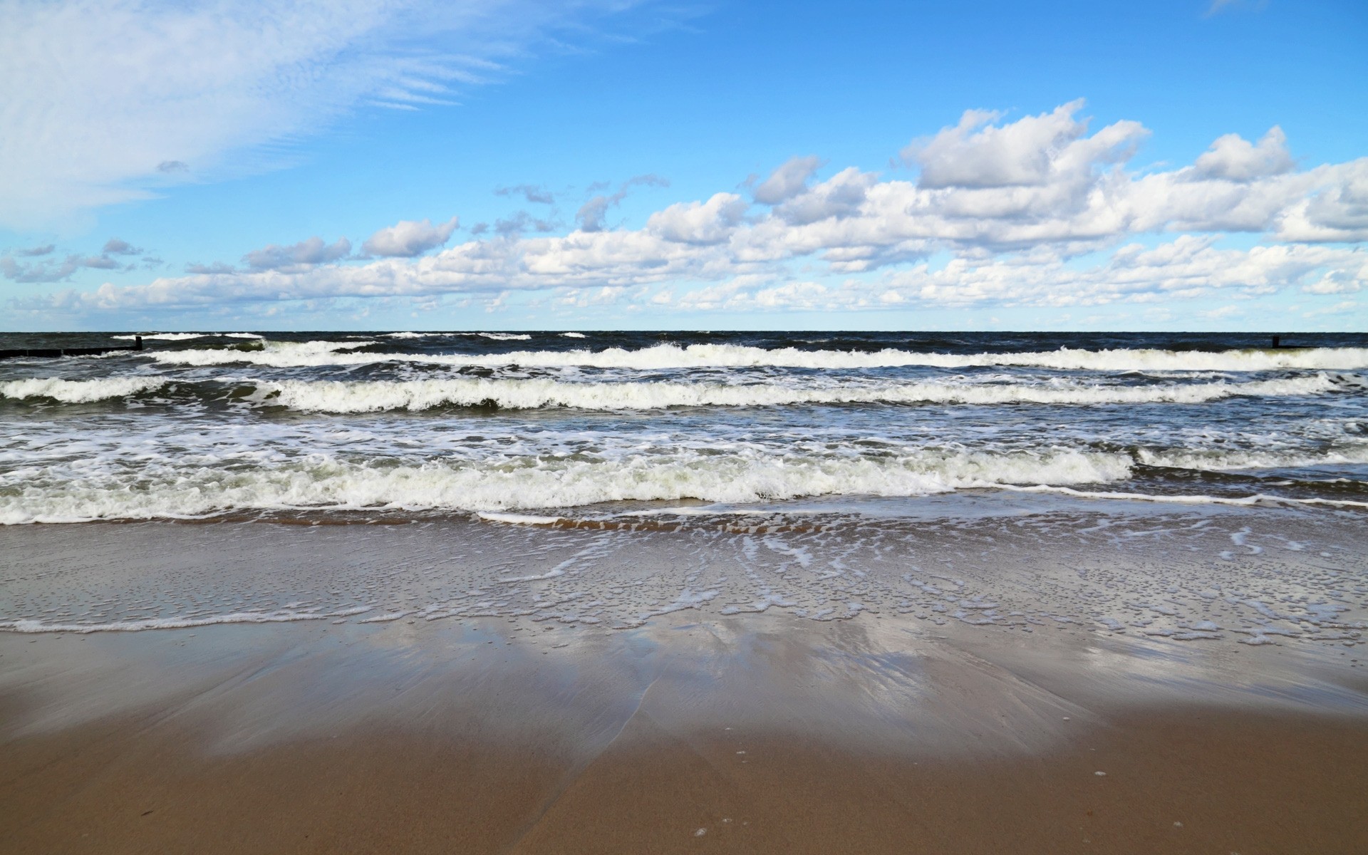 Las olas del mar y el cielo azul