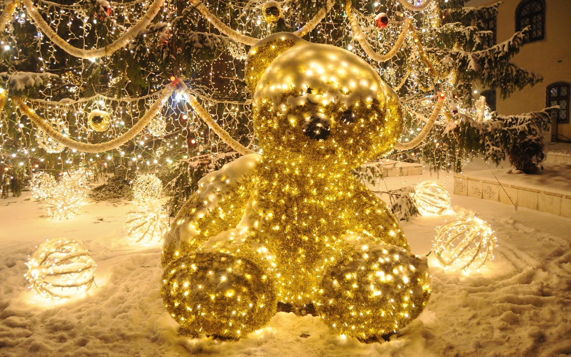 Oso de año nuevo sentado en la nieve