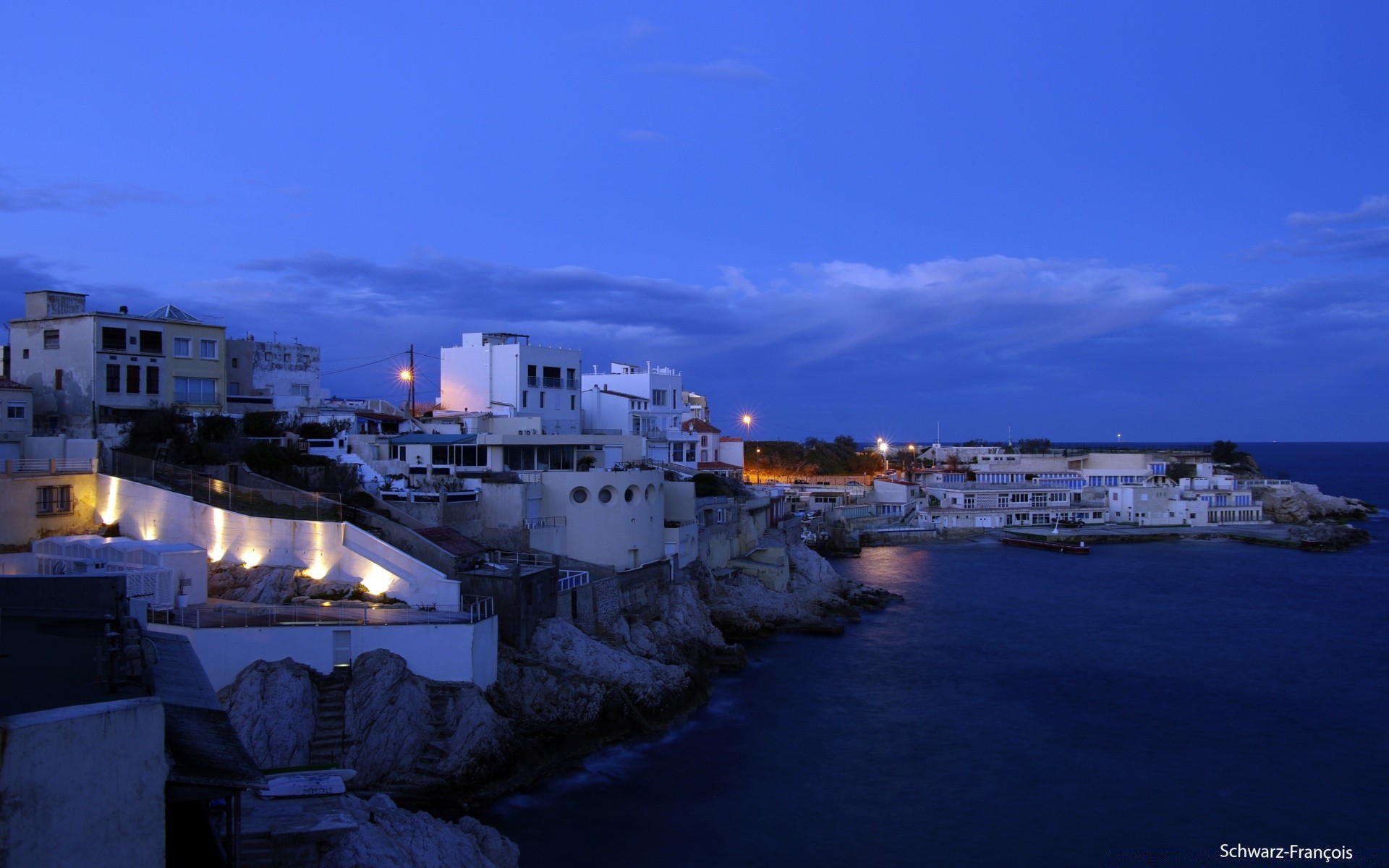 Ciudad blanca como la nieve a orillas del mar oscuro