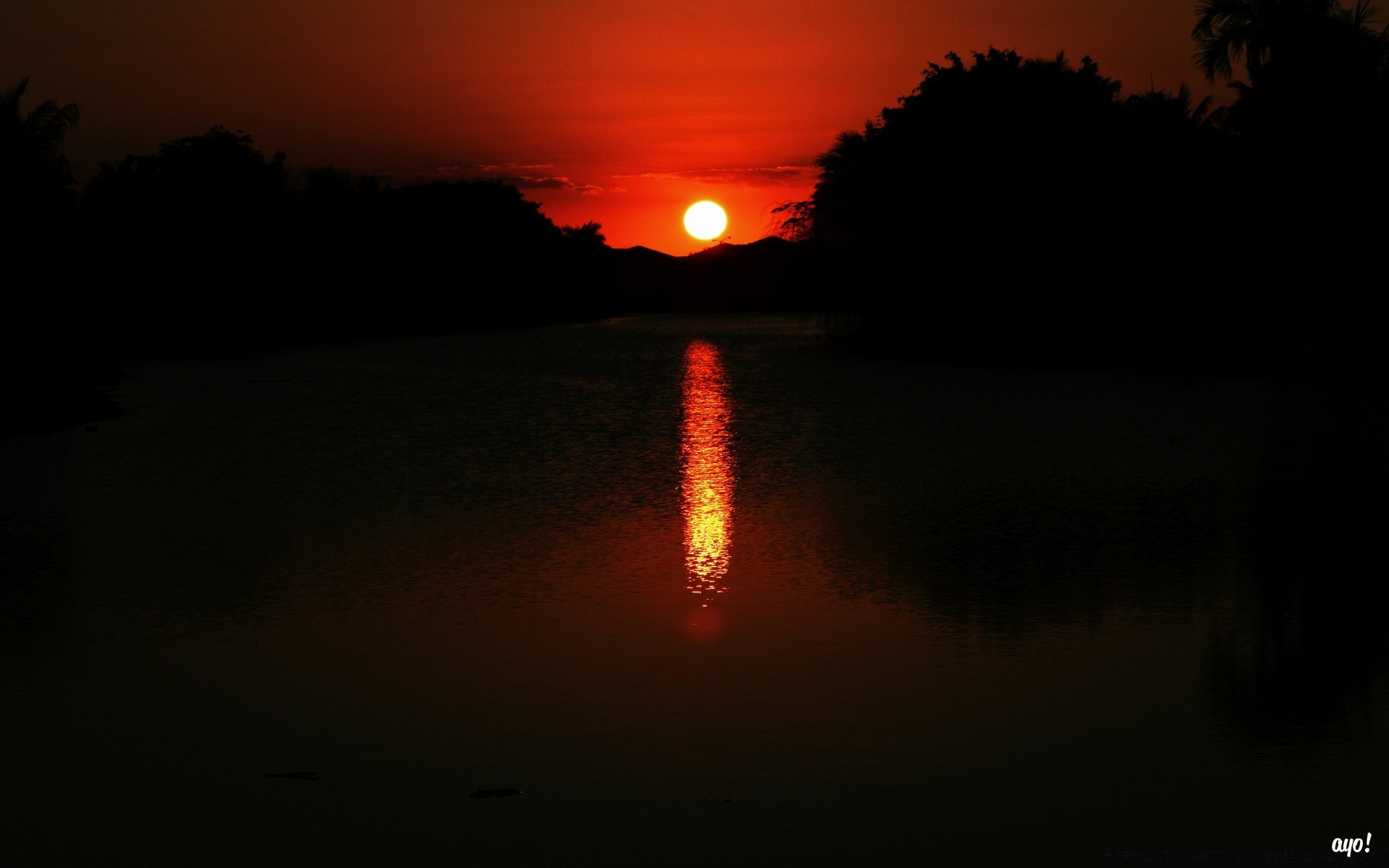 Puesta de sol en el horizonte oscuro