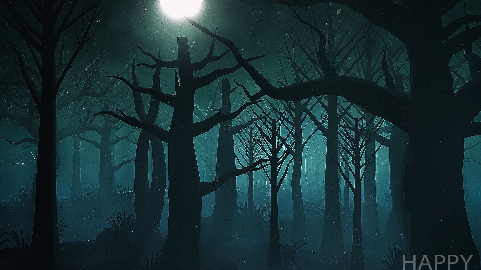 Imagen de dibujos animados de un bosque oscuro y aterradorImagen de dibujos animados de un bosque oscuro y aterrador