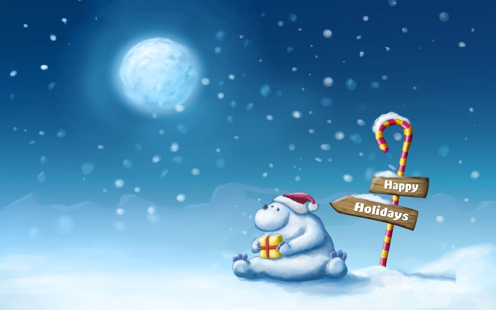 Oso de peluche blanco en el fondo de los copos de nieve de invierno
