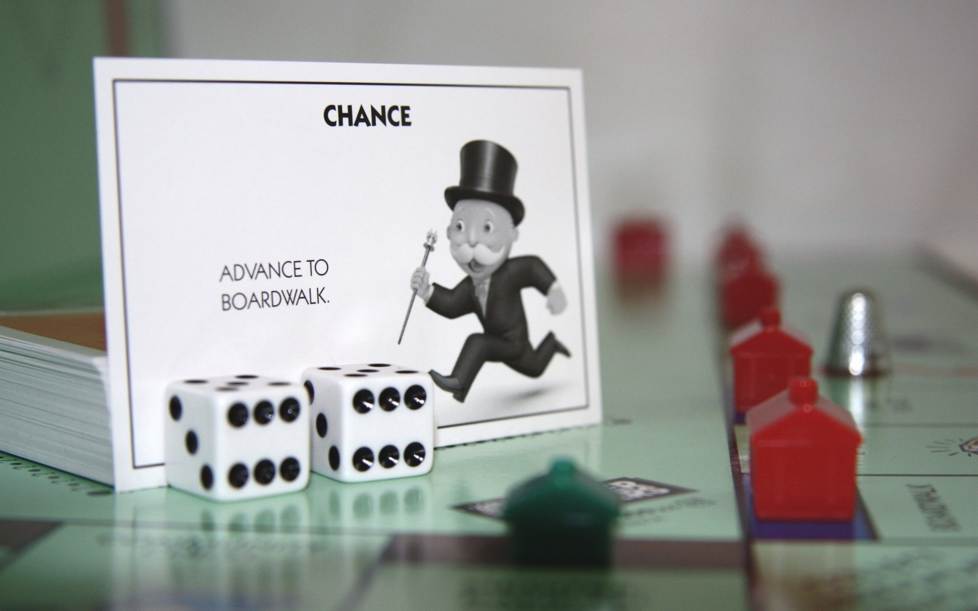 Campo de Monopolio con tarjeta y dados