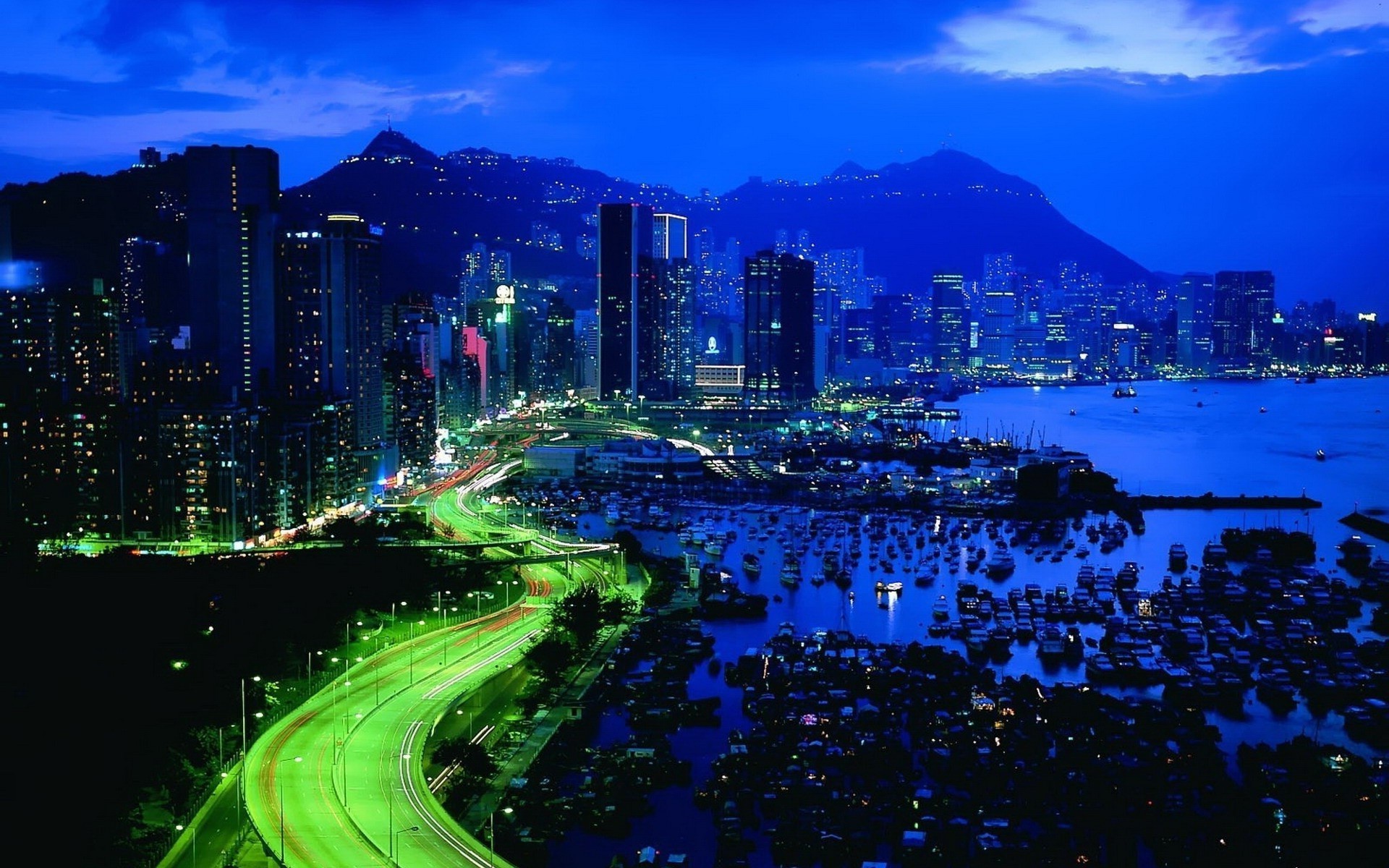 La puesta de sol se refleja en el cuerpo de agua de la ciudad