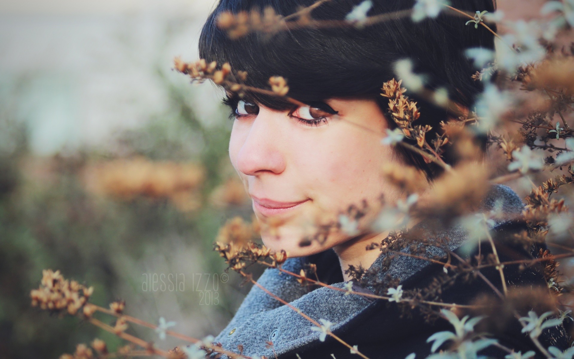 Chica junto al mar en el fondo de la puesta de sol y las montañas