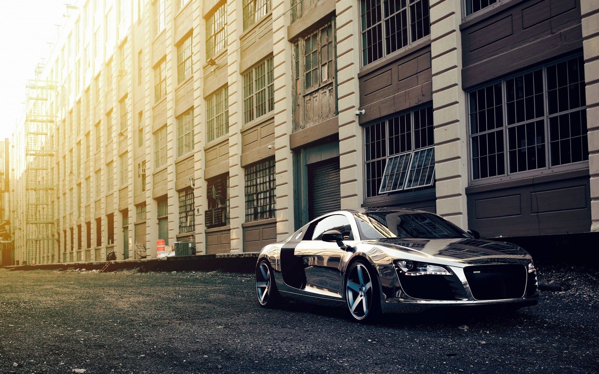 Coche de plata brillante en la acera