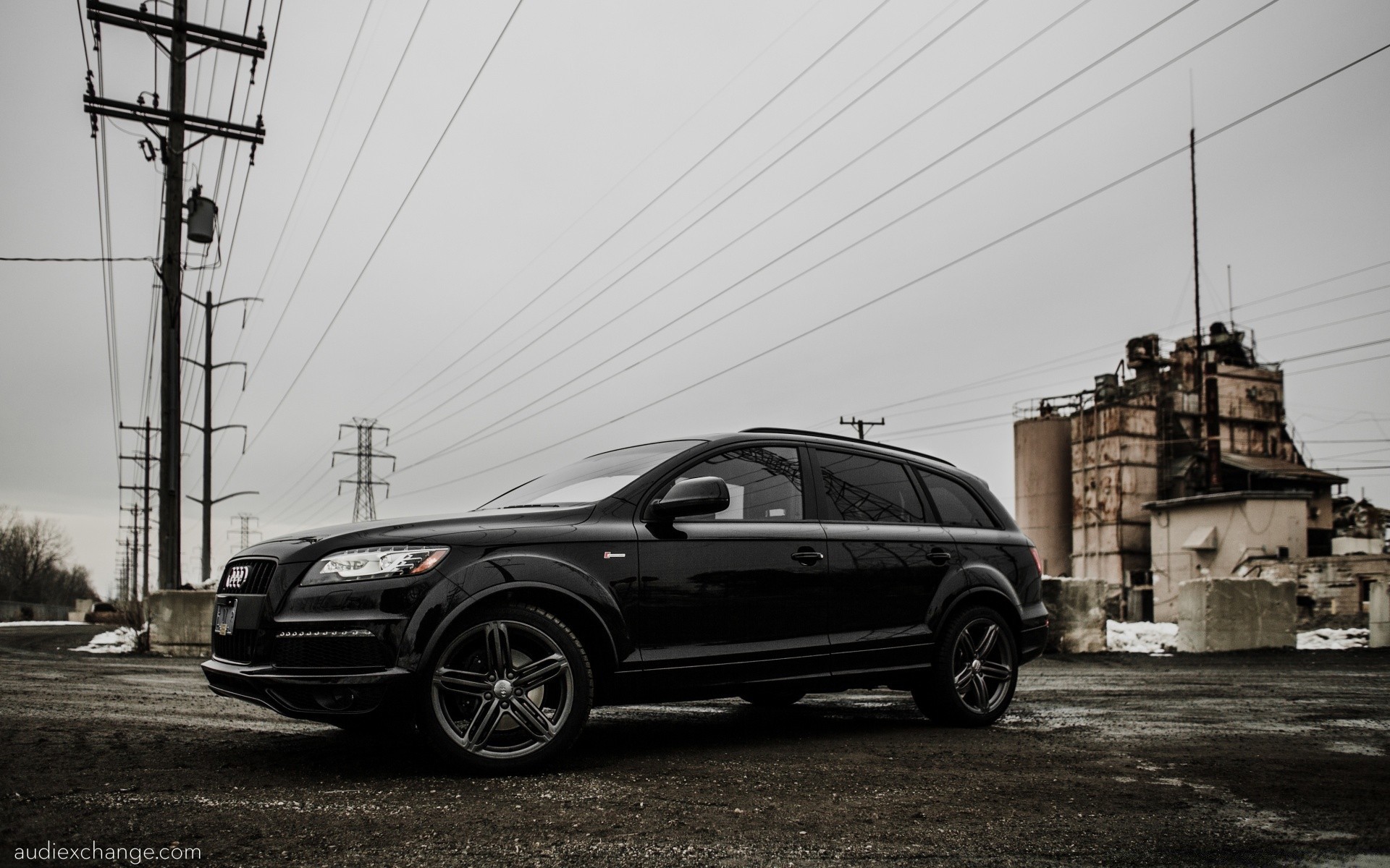 El coche de Audi en el desierto de la noche de la ciudad