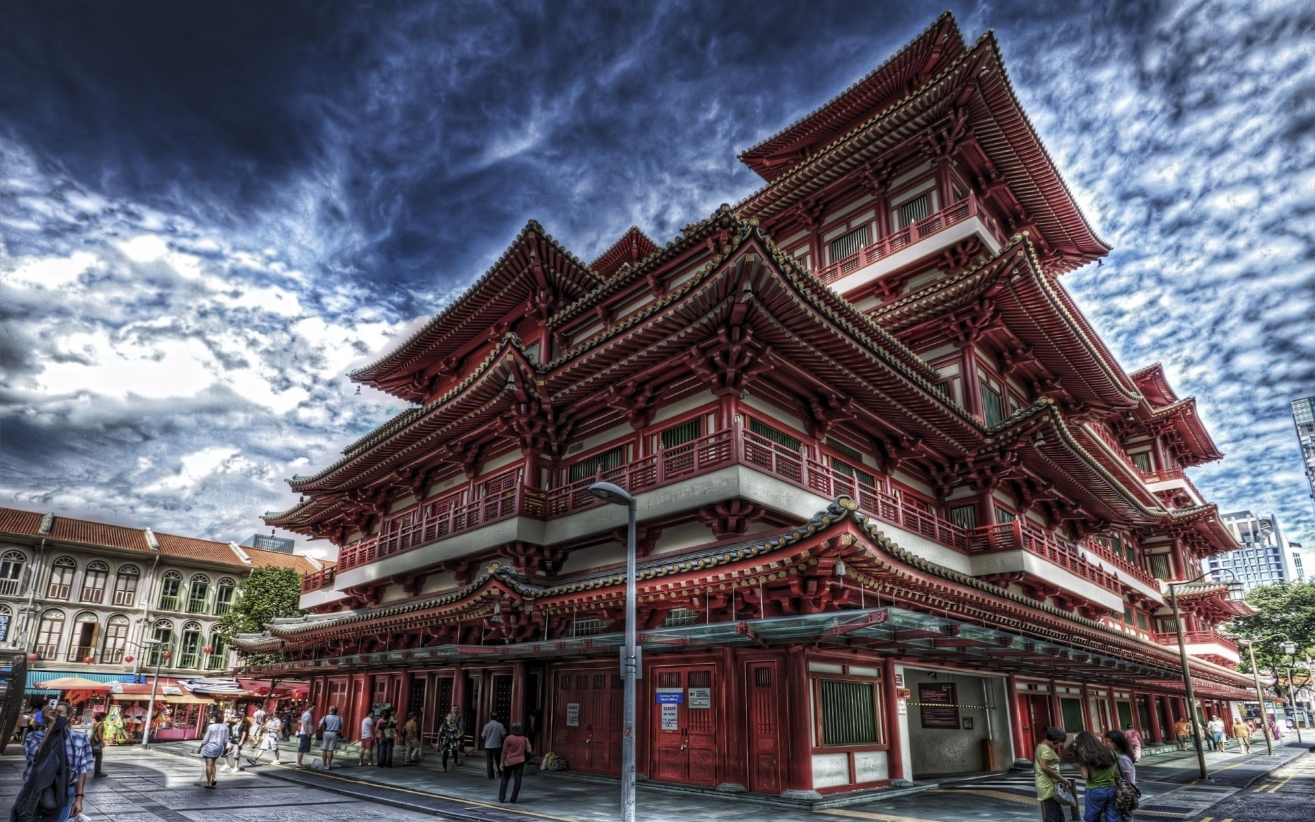 Asia, el encantador cielo de la puesta de sol sobre la arquitectura