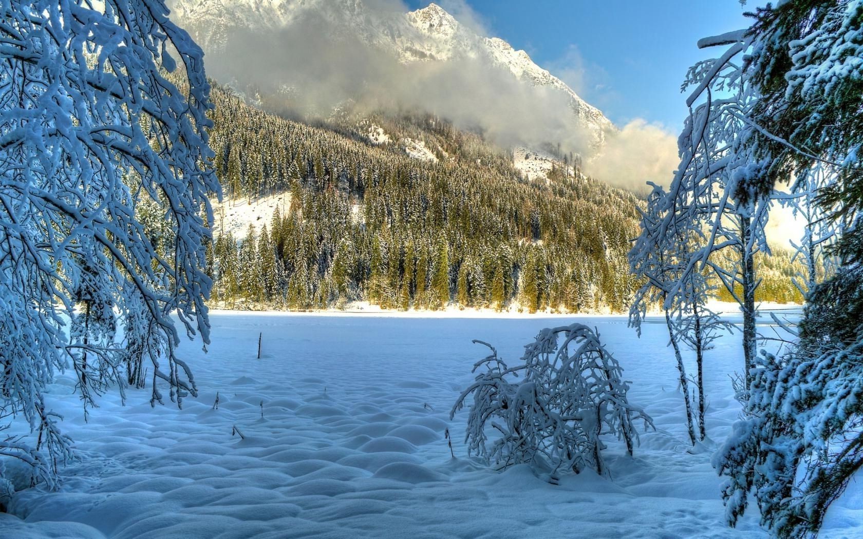 Paisaje de invierno. tiempo de nieve. cascada en invierno