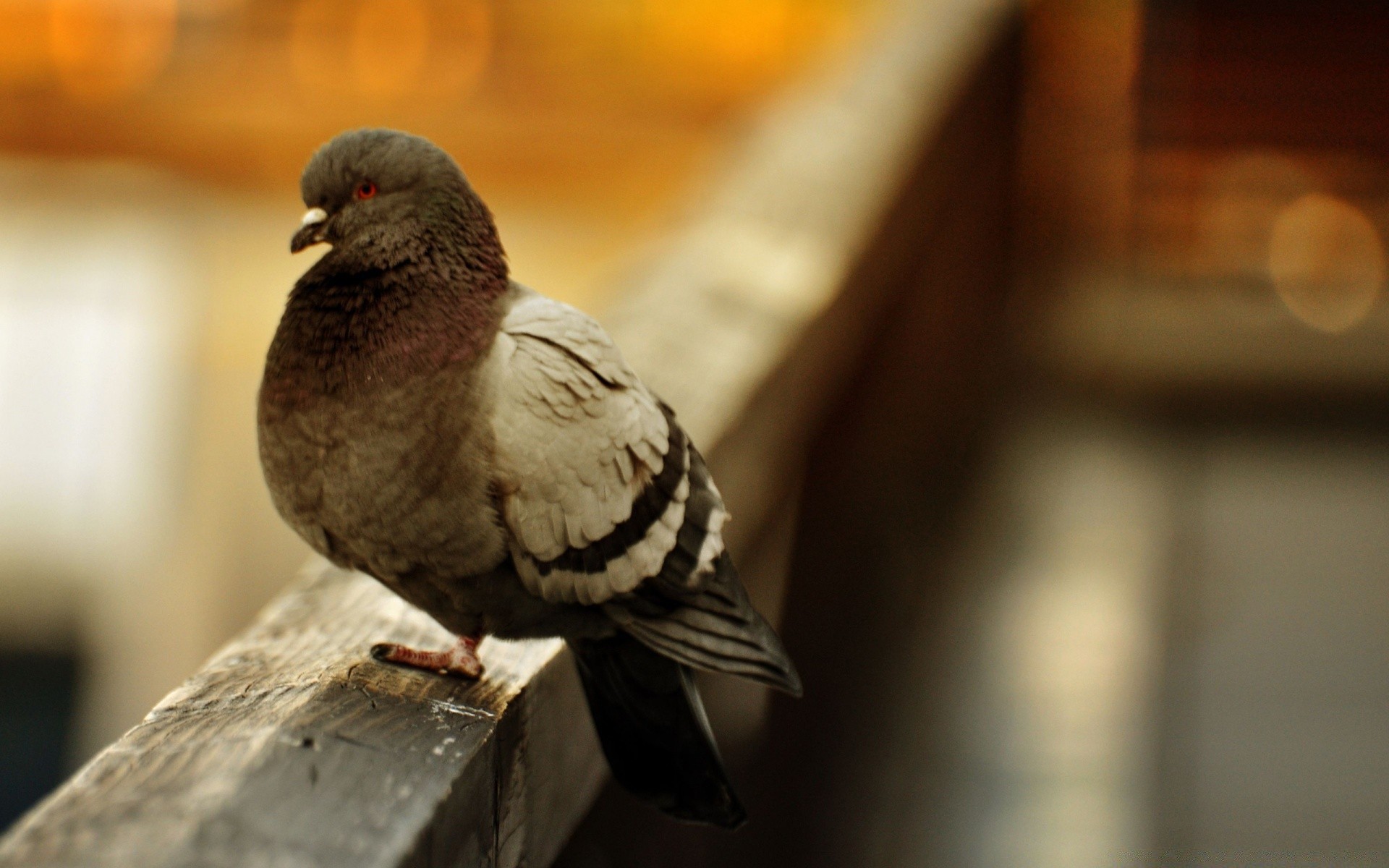Una paloma entre los árboles se sienta en un tocón de árbol