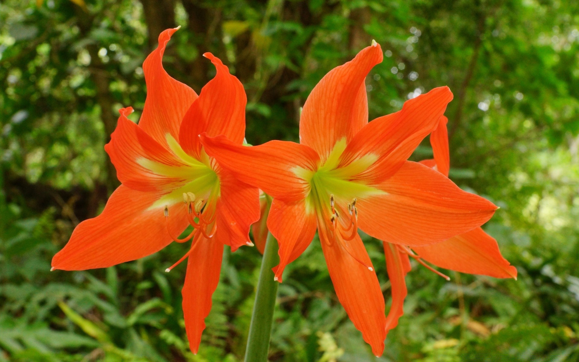 Flores de color naranja brillante sobre fondo verde