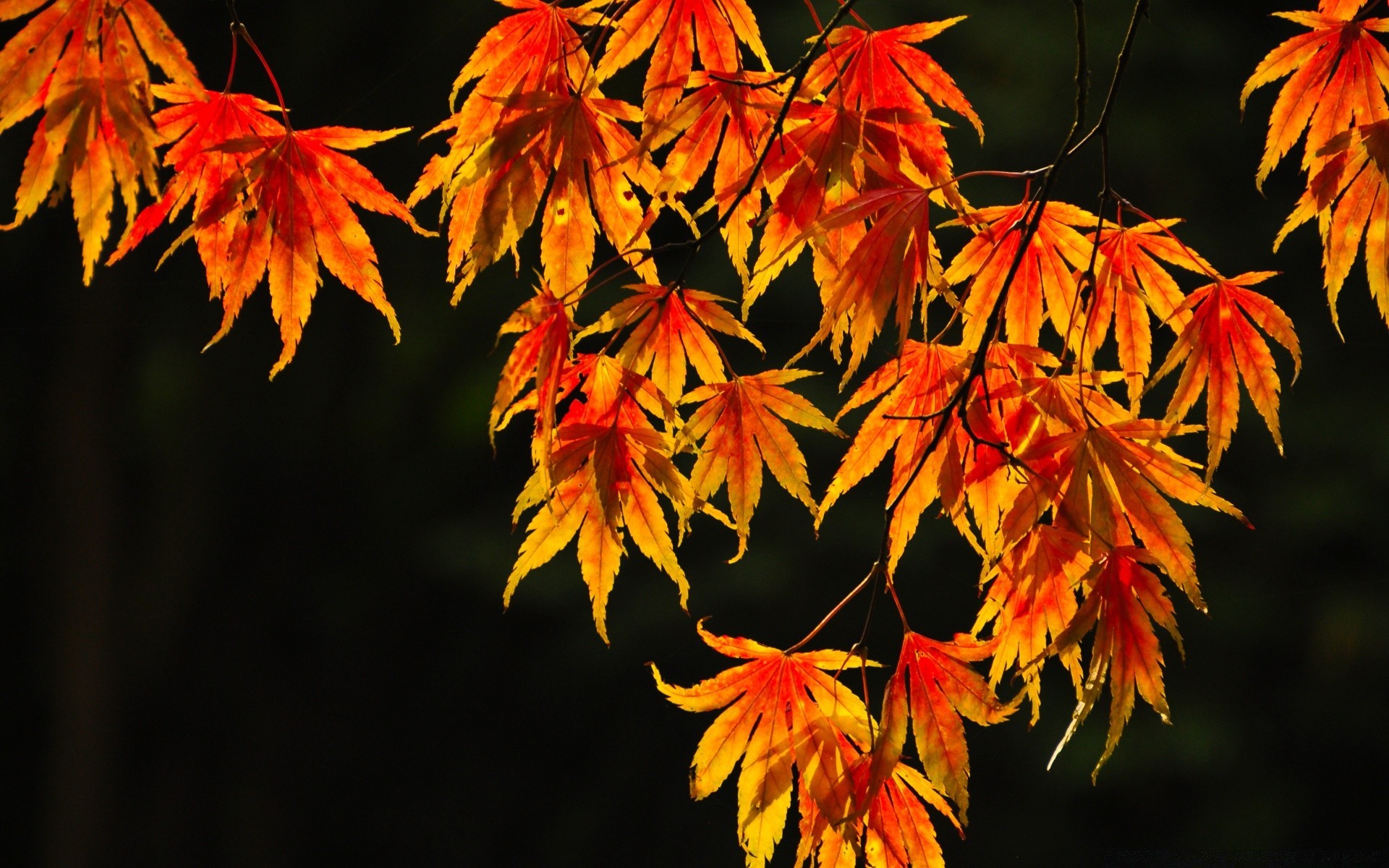 Hojas de arce escarlata listas para caer