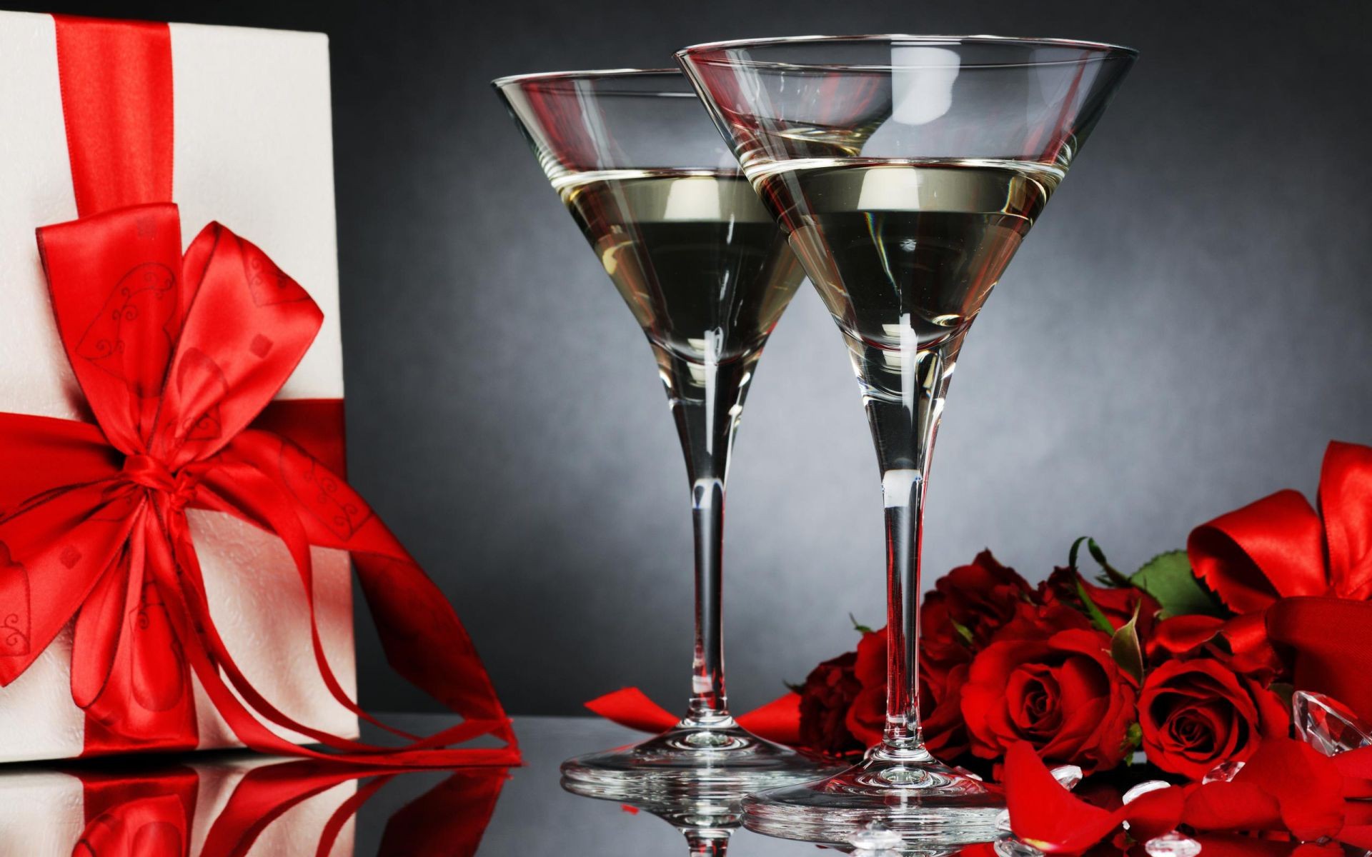 Flores y copas de vino. Fiesta para dos
