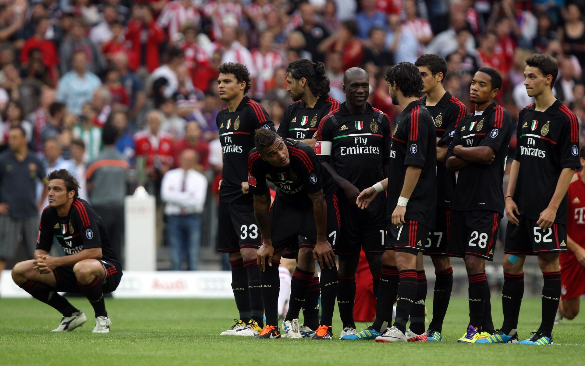 Equipo de fútbol con uniforme azul en el campo de fútbol