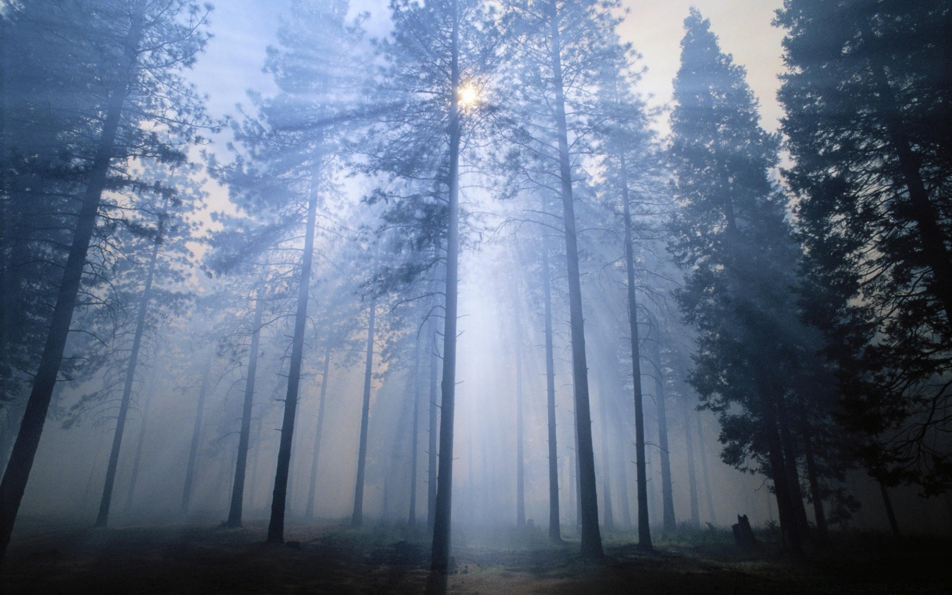 A través de los altos árboles de Navidad se abre paso la luz