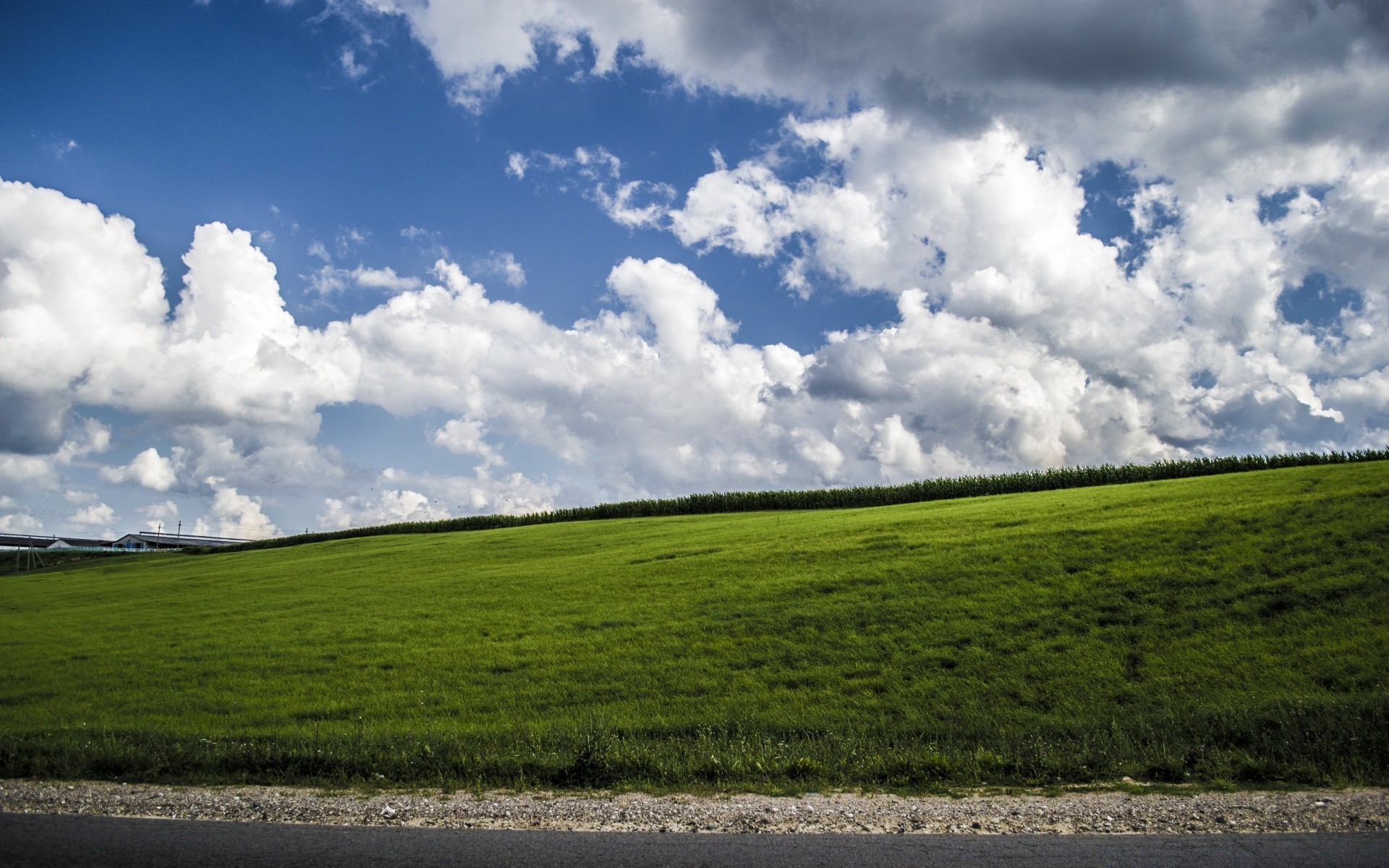 Paisaje de la naturaleza. Campo, montañas, bosque y cielo