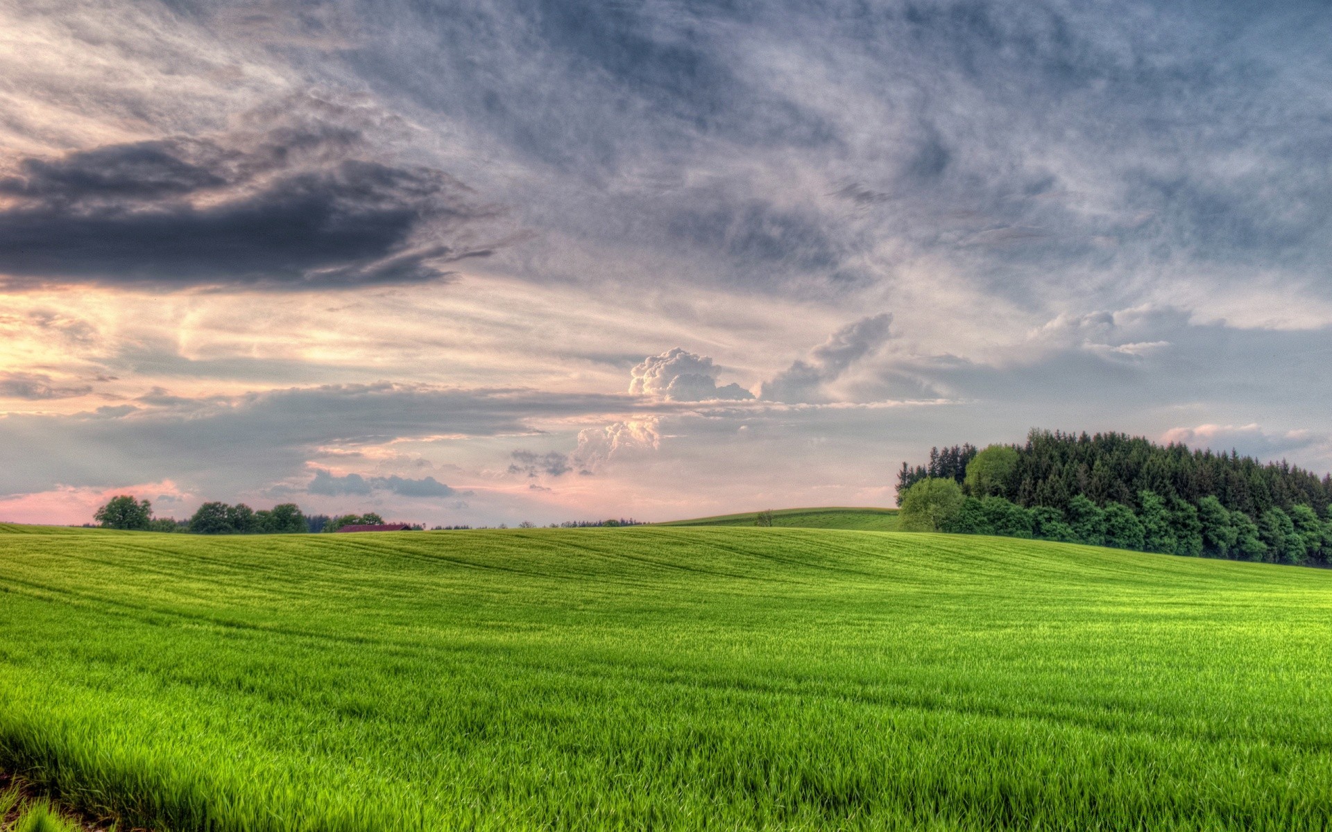Cielo de verano sobre la llanura verde