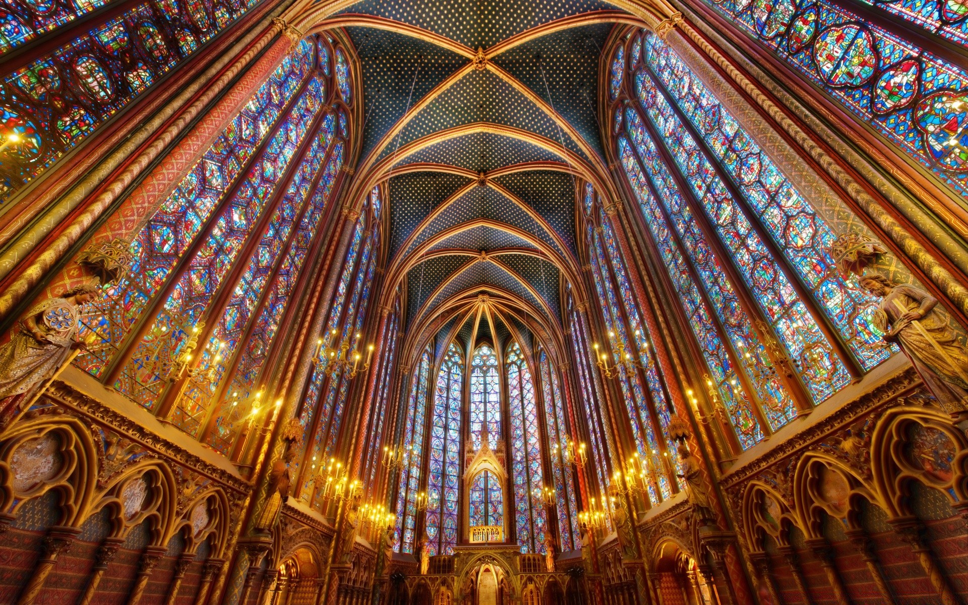 Las bóvedas altas de la catedral están decoradas con patrones de vidrio de colores