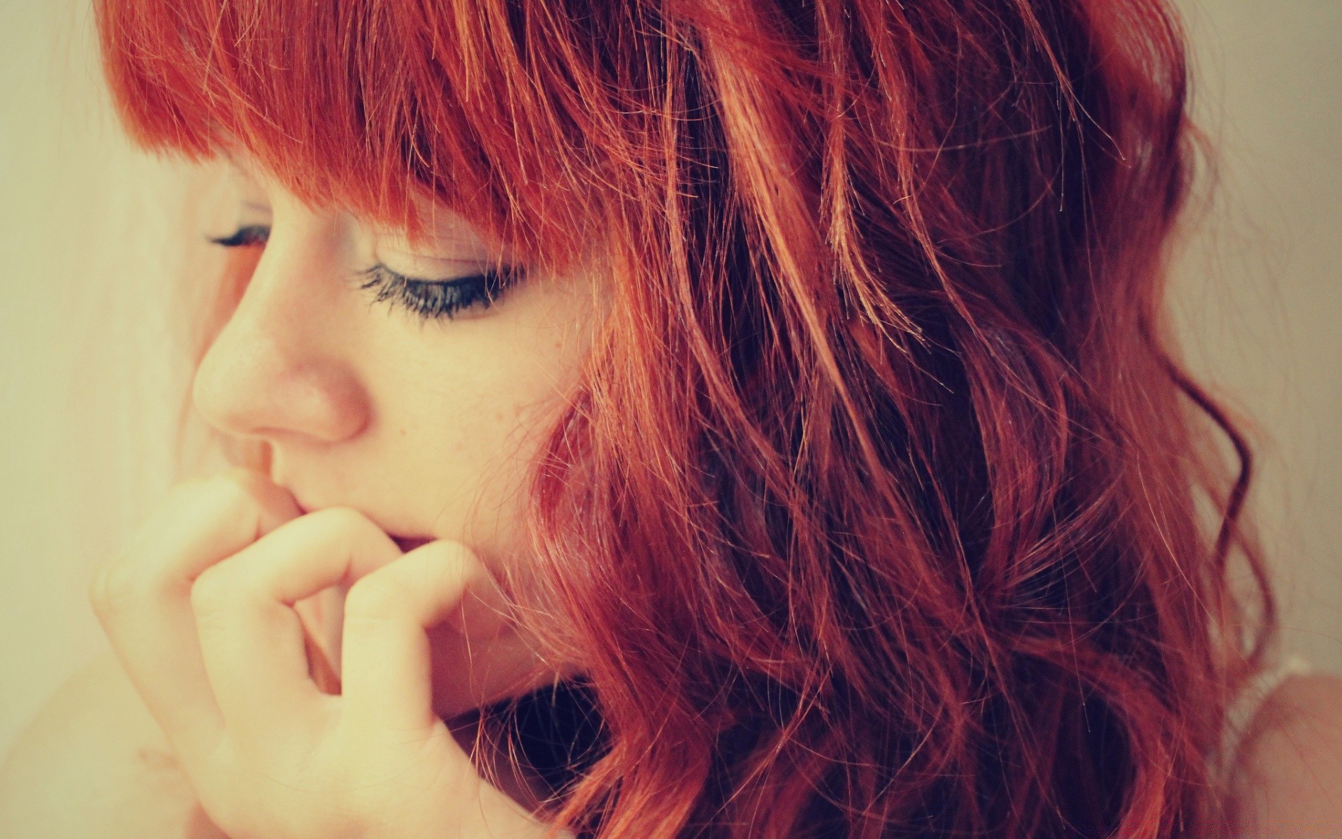 Retrato de una chica de pelo largo en estilo anime, con un vestido negro y un tocado
