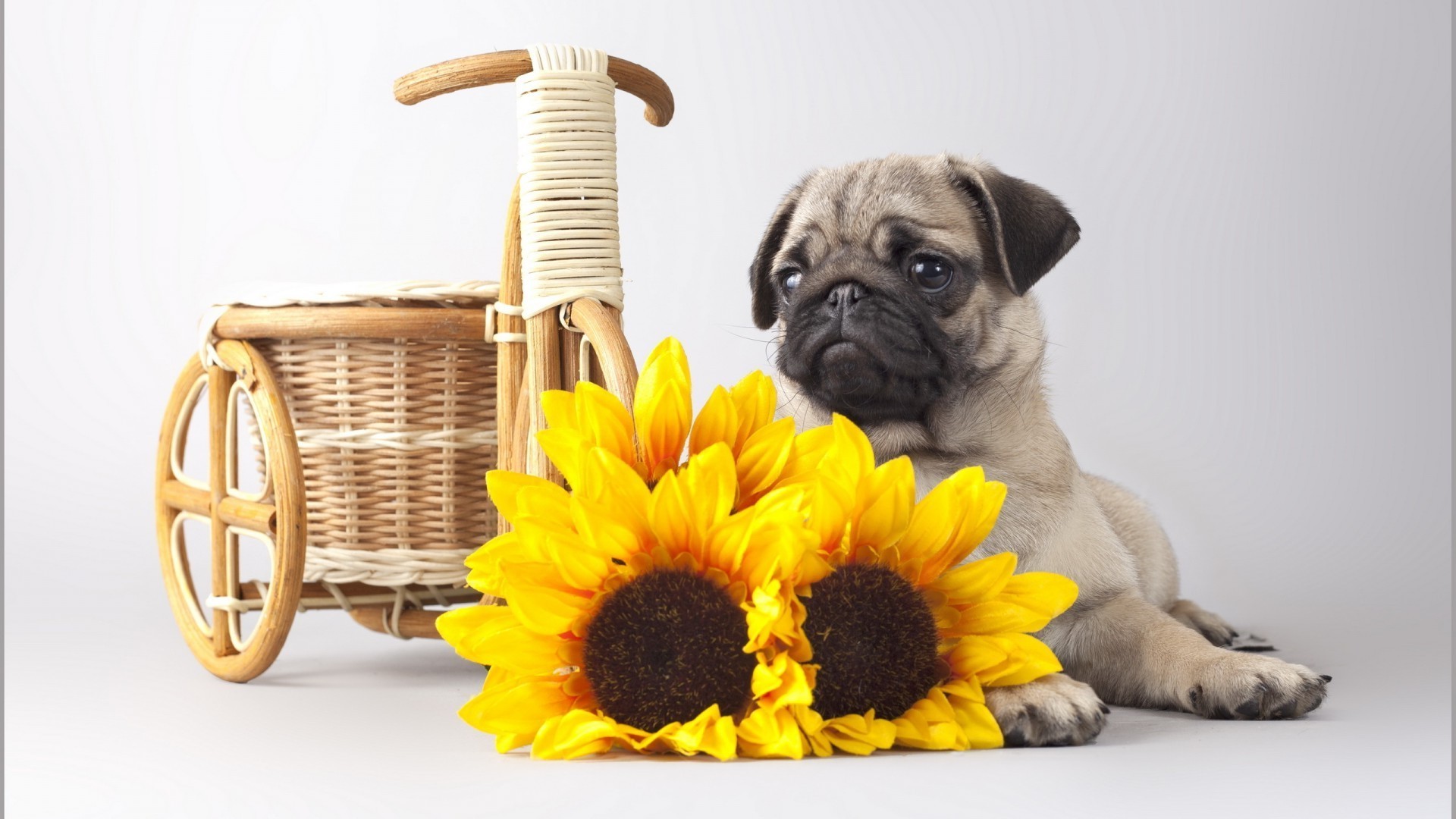 Girasoles amarillos. Lindo perrito
