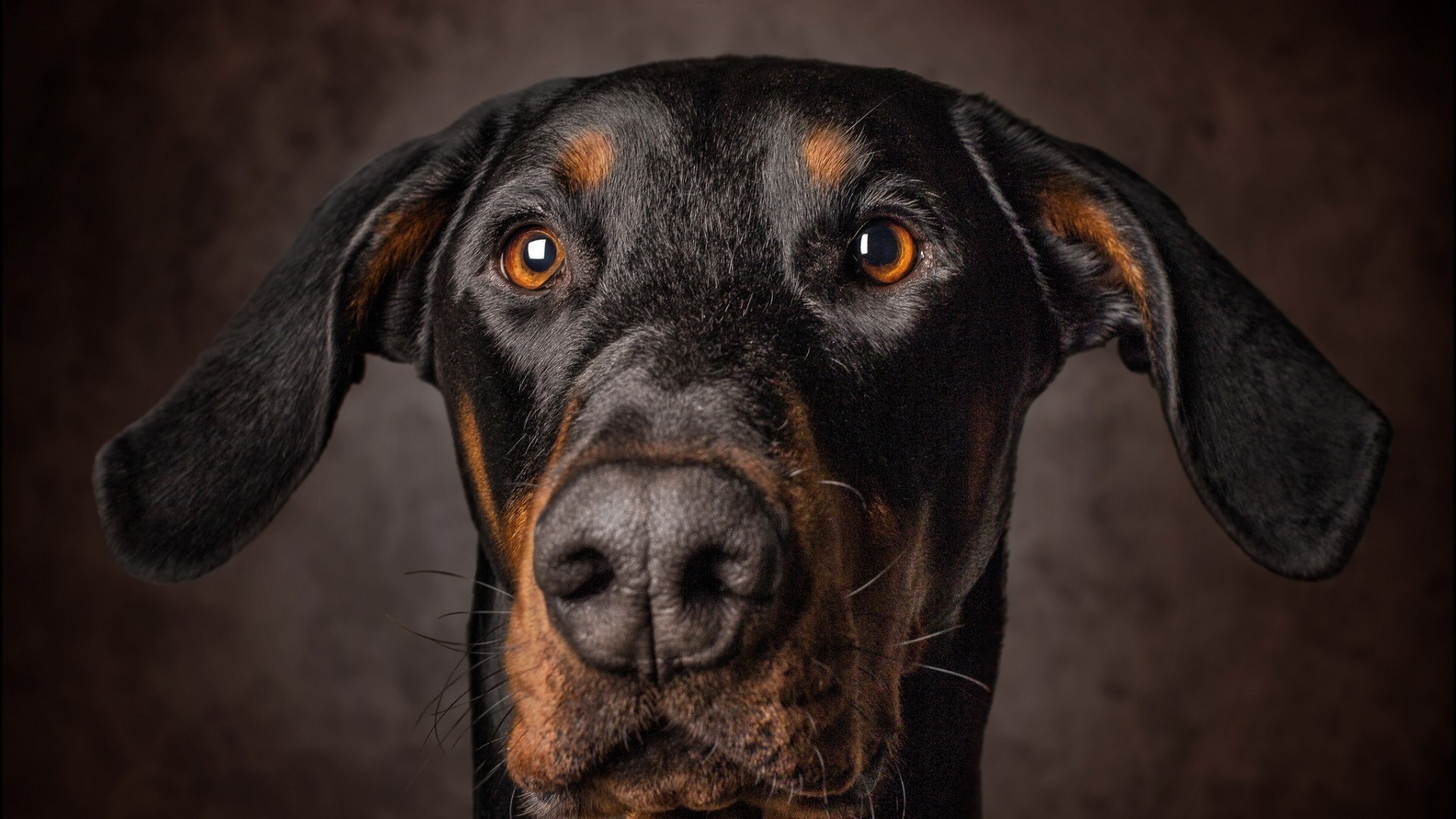 Hocico de perro de cerca sobre fondo negro
