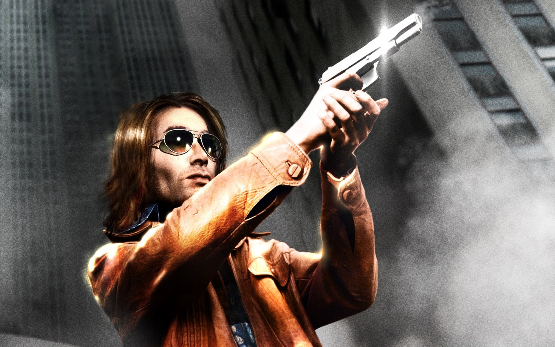 Hombre con gafas con pistola en la mano