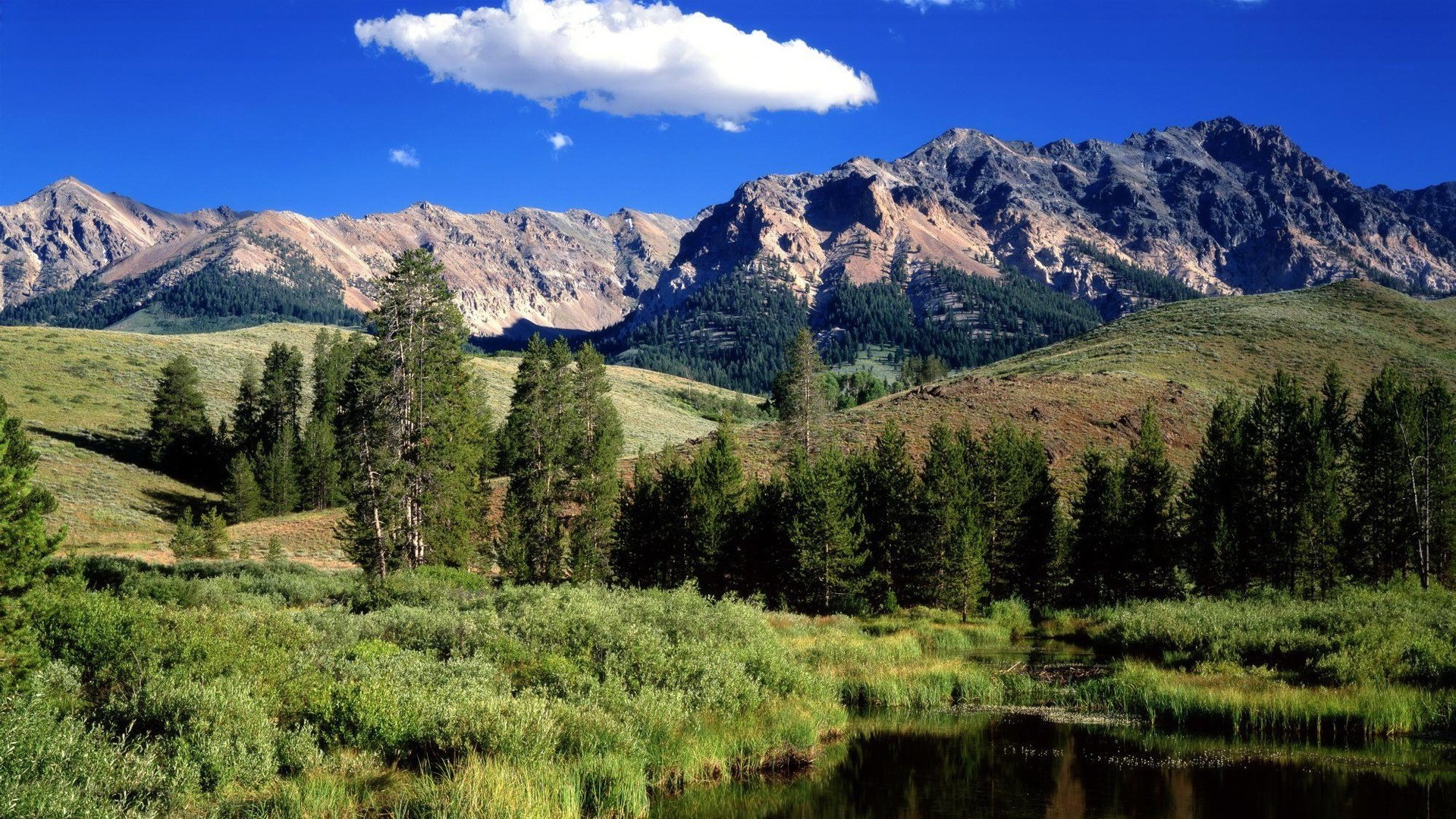 Paisaje pintoresco de montañas y prados