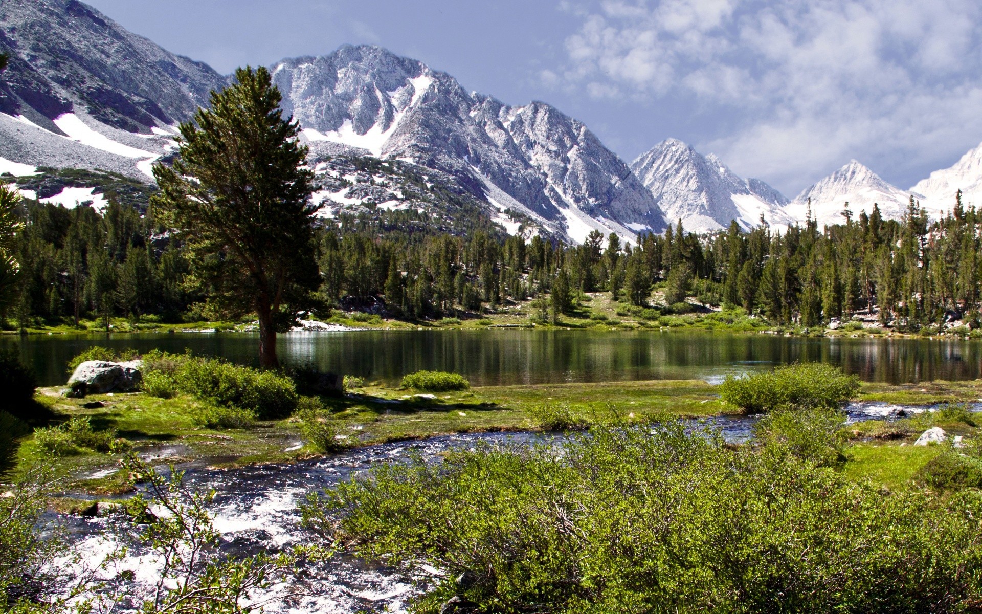 Río azul entre las altas montañas