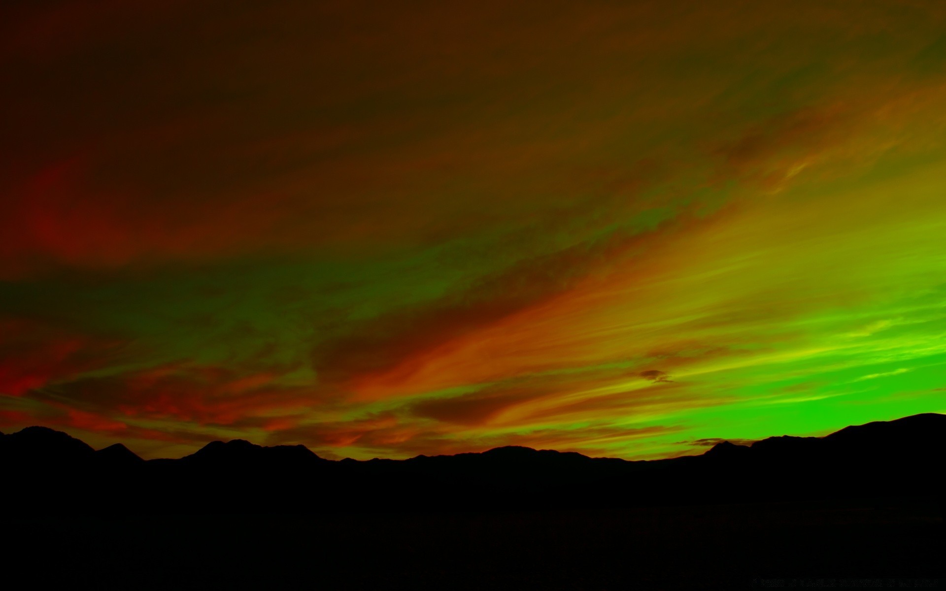 Montañas rojas brillantes al atardecer