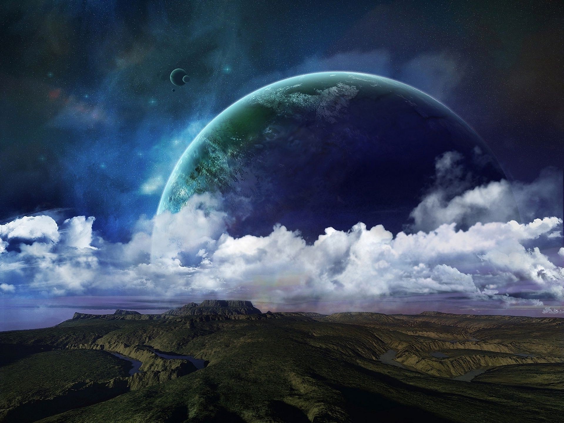Planeta ríos colinas superficie relieve nubes