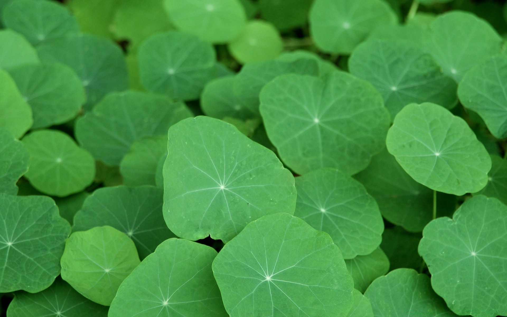 Gotas de la carrera de la mañana en hojas verdes brillantes