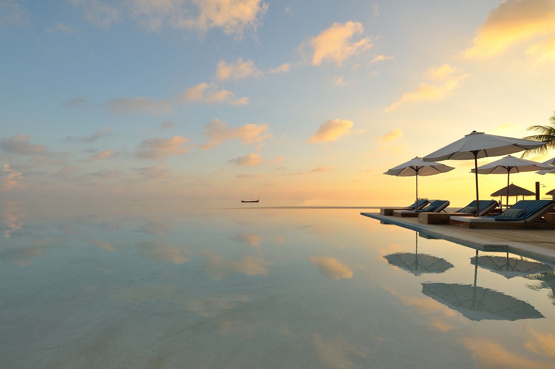 Puesta de sol en la playa en los Emiratos Árabes Unidos