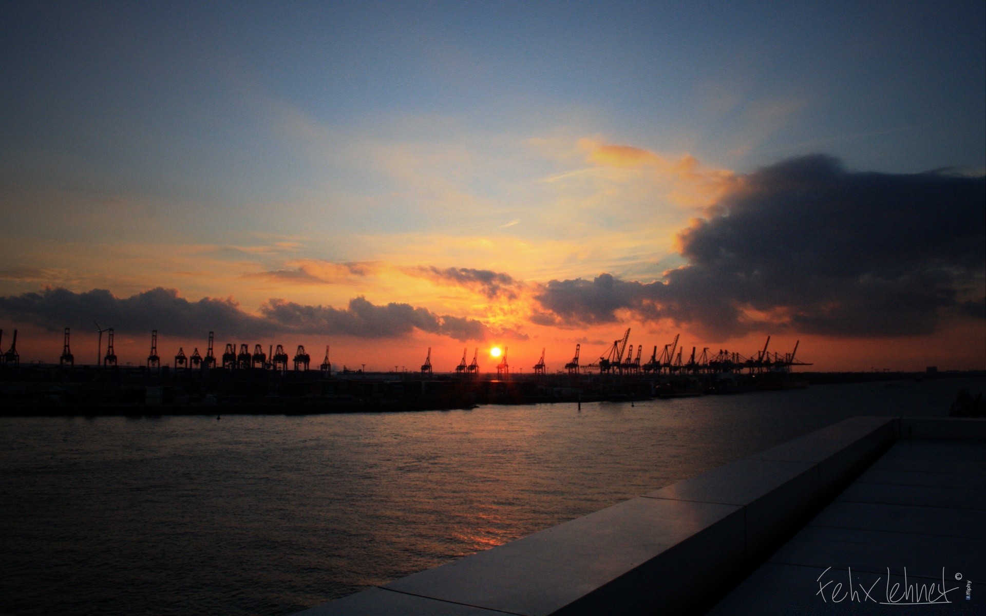 Puesta de sol sobre el río por la noche