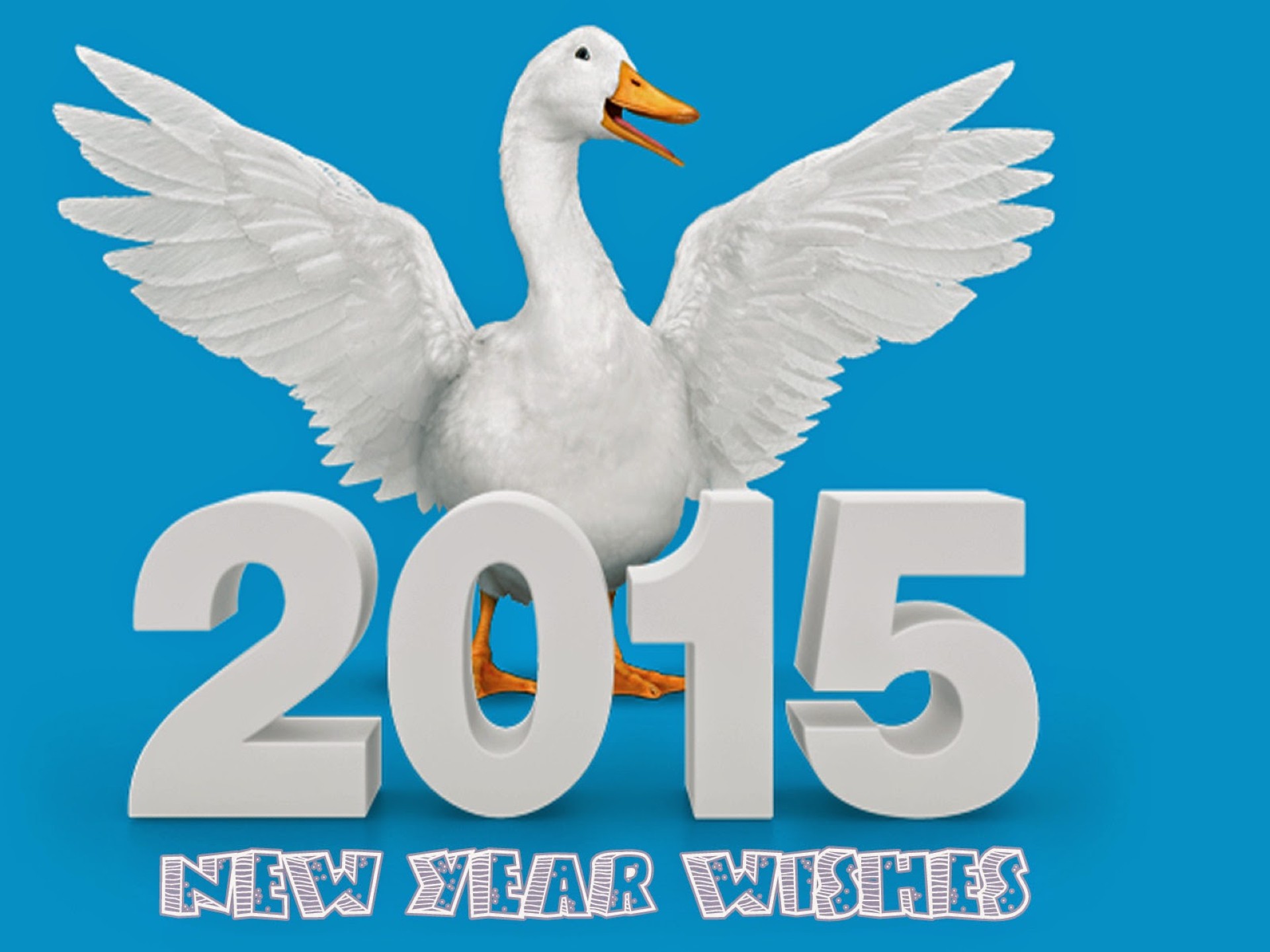 El ganso extendió sus alas. Inscripción feliz año nuevo 2015