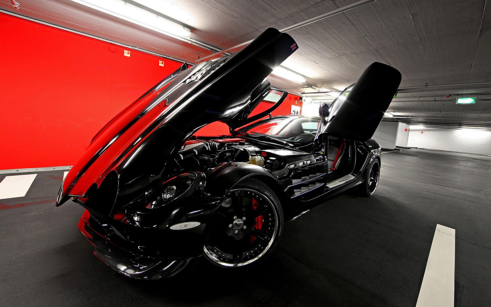 Coche en el recinto ferial en exposición con apertura de puertas y capó