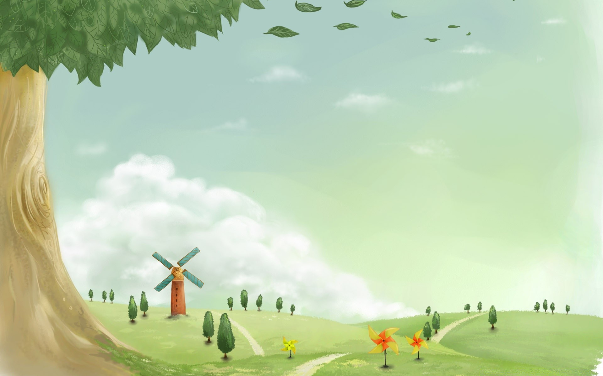 Pradera con molinos de viento naturaleza