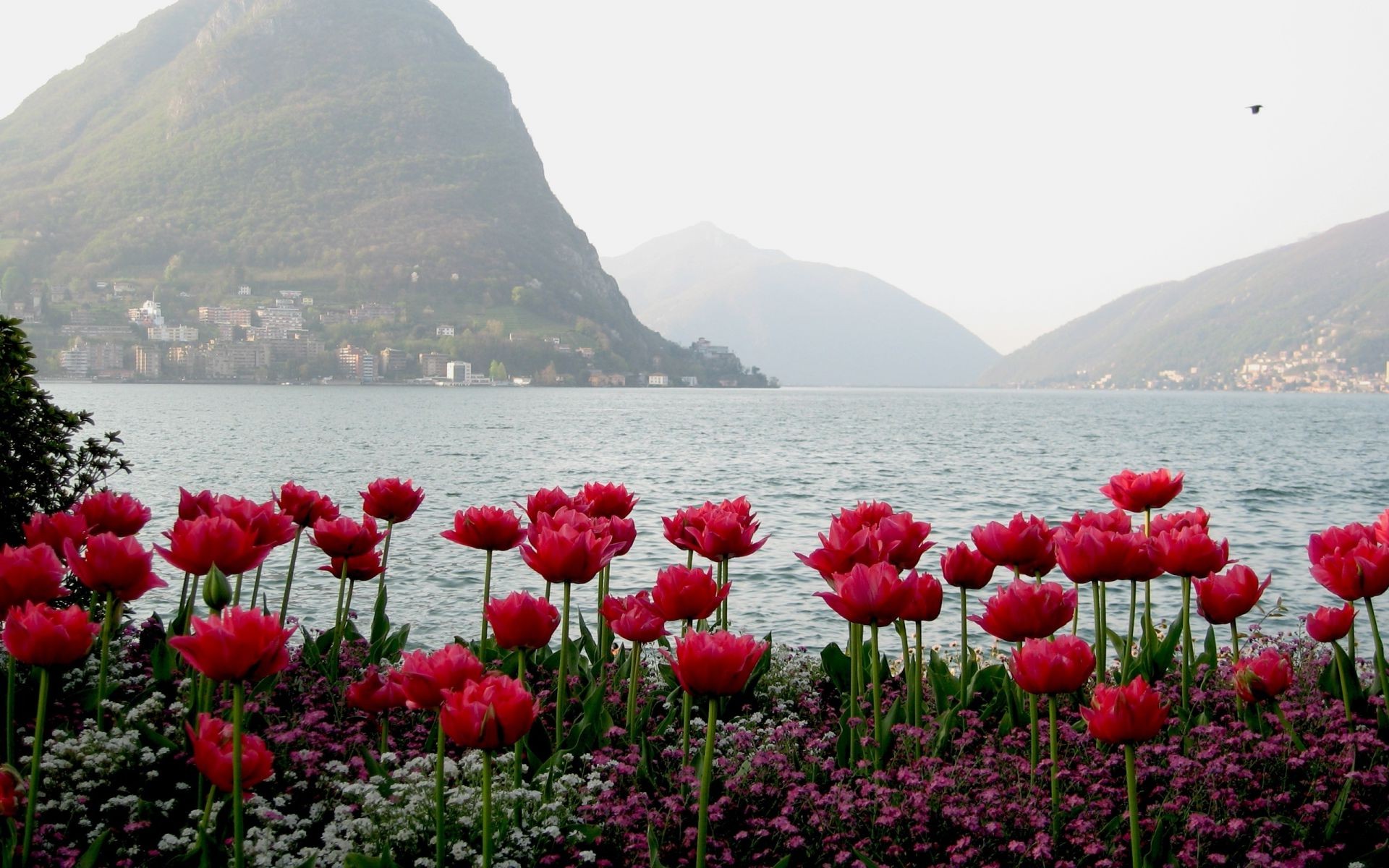 Valle floreciente bajo un cielo azul ligeramente nublado
