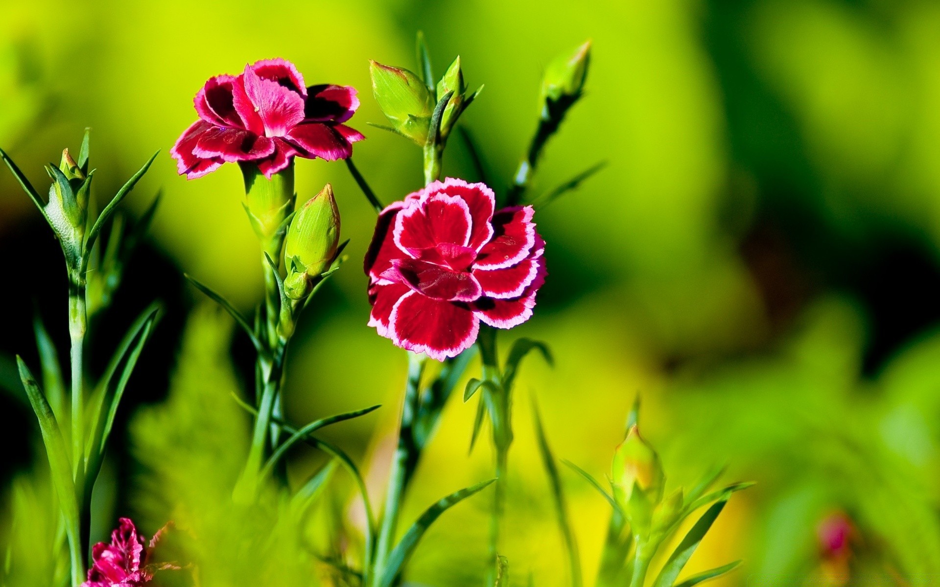 Dos claveles rojos sobre un fondo de vegetación