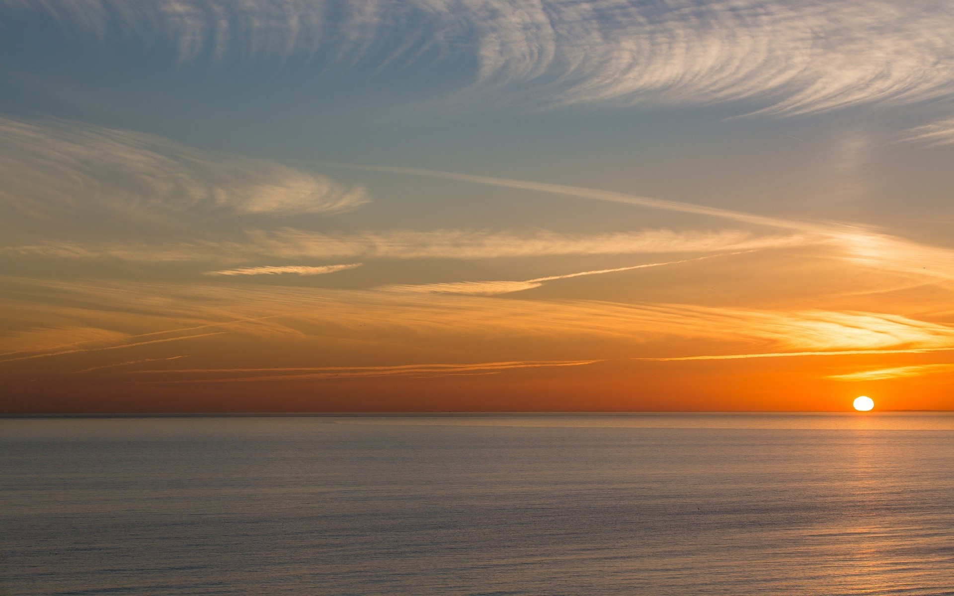 Una torre oscura en una montaña junto al mar contra el prolongado cielo negro de la puesta de sol