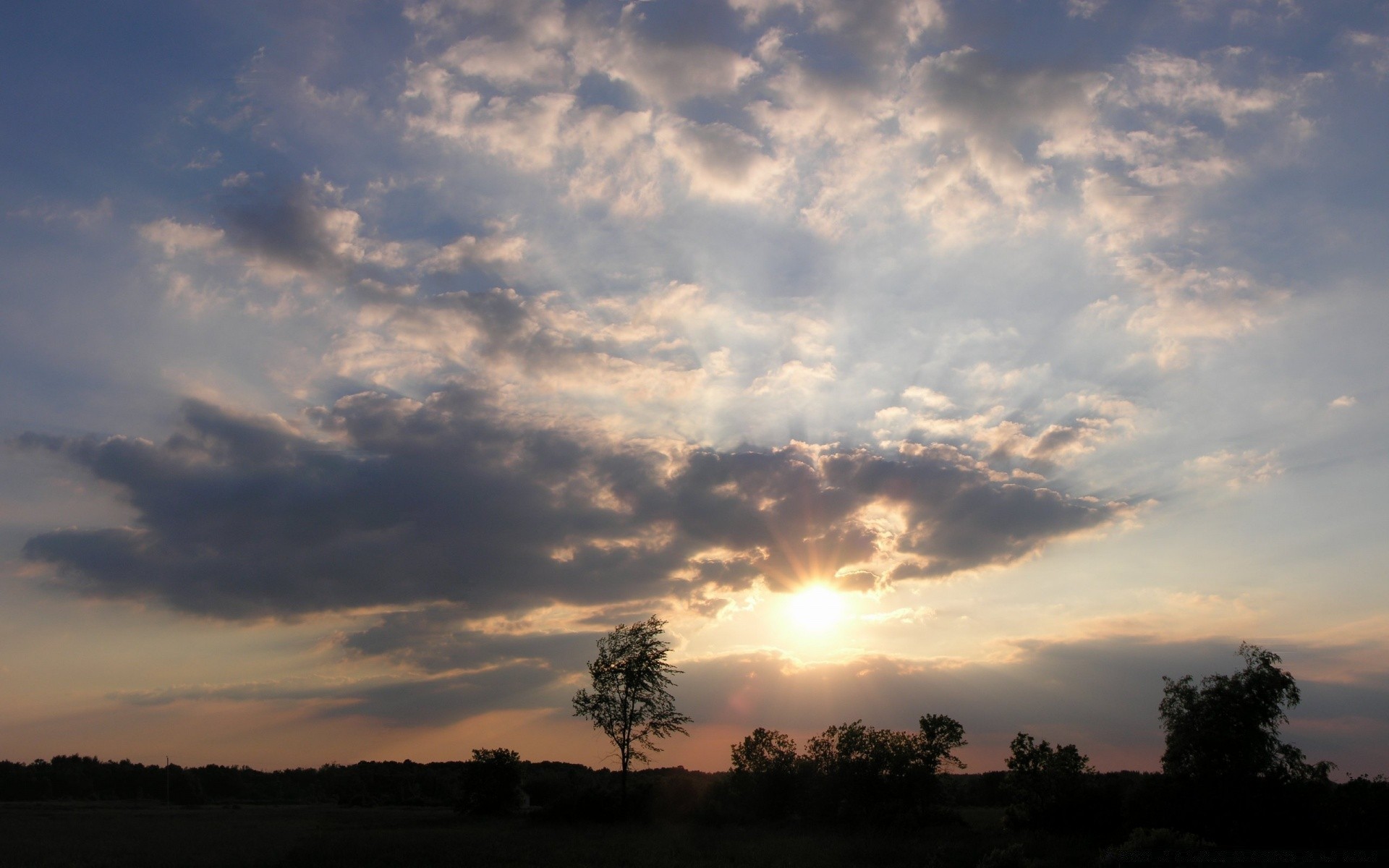 Puesta de sol en llamas ardiendo sobre la ciudad en llamas